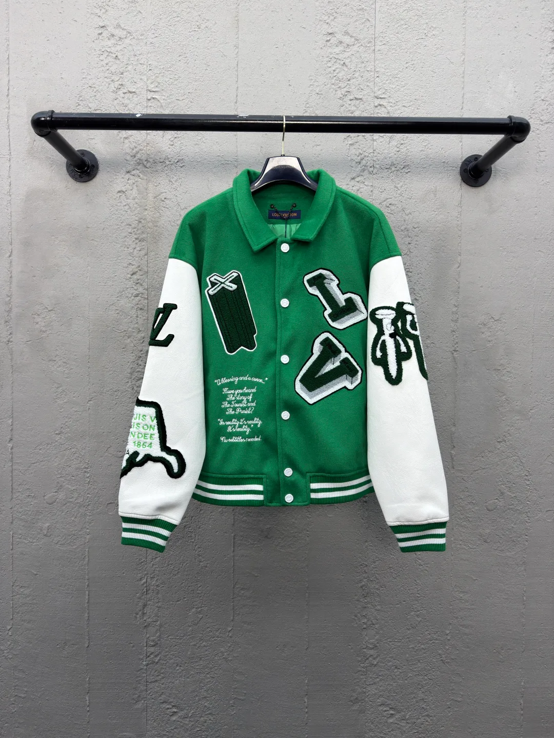 Свитшот мужской LOUIS VUITTON — зелёного цвета, рукава из зернистой кожи соединены с телом из хлопково-шерстяной ткани.