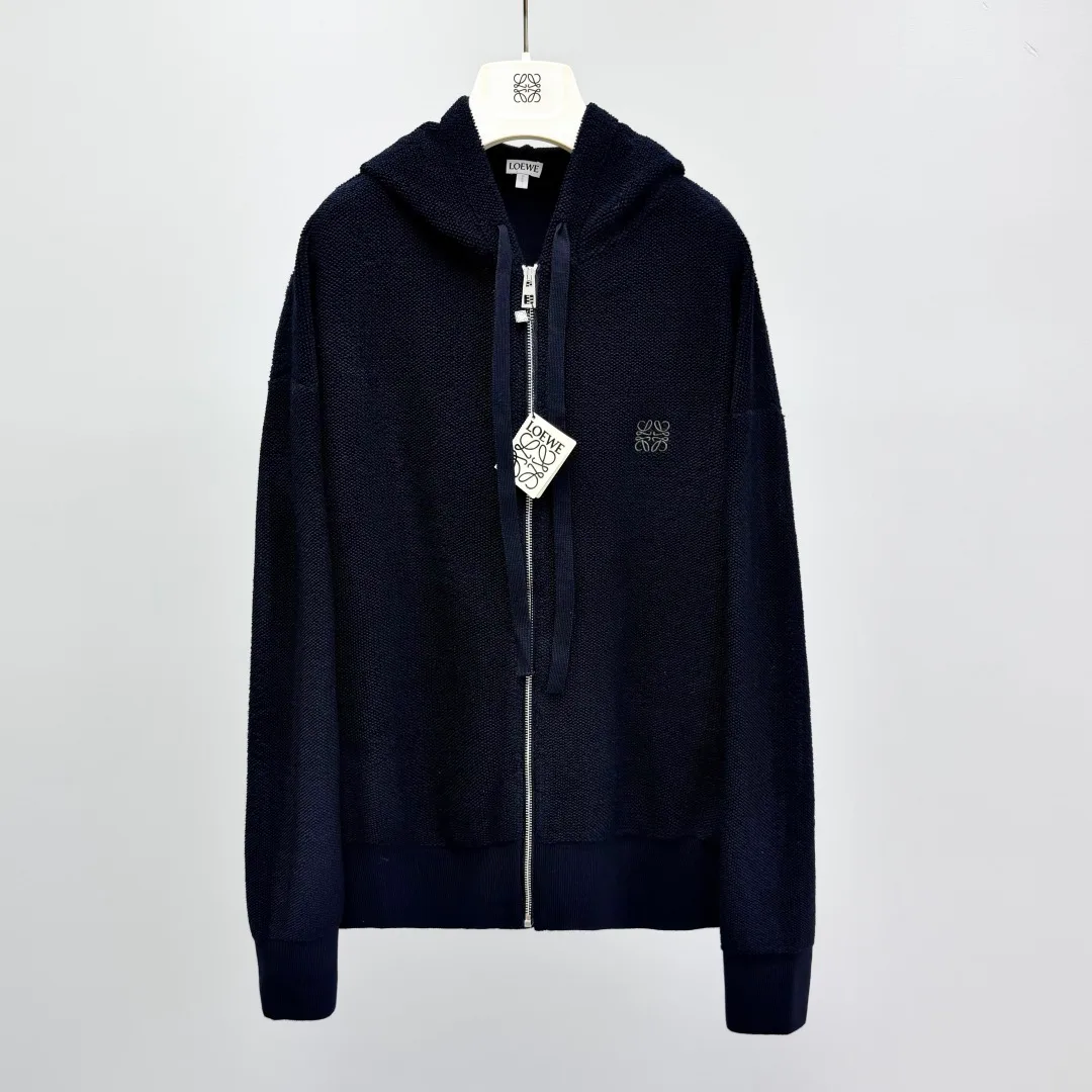 Свитшоты мужские LOEWE — худи из шерсти средней плотности с капюшоном и передней молнией. Крой обычный, длина стандартная, швы выполнены из махровой ткани и обеспечивают мягкость и уют. Изделие имеет капюшон, переднюю молнию, резиновые манжеты на рукавах и нижний край, выполненный ребристой кромкой. На груди размещена вышивка Anagram. Подходит для прохладной погоды и межсезонья.