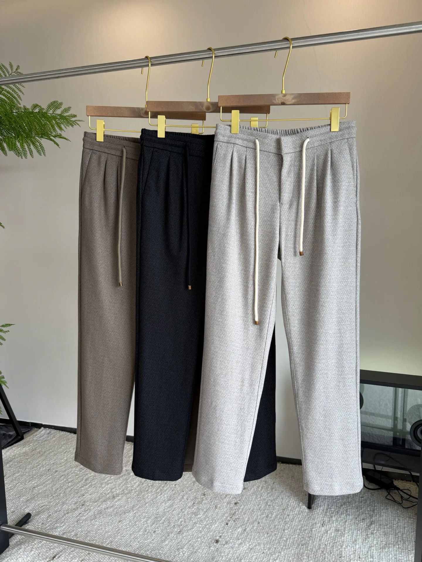Эластичный пояс с регулирующим шнурком дает удобную посадку и свободу движений. Внутренняя отделка полностью аккуратно обрамлена. Изделие без логотипов демонстрирует строгую и современную эстетику. Доступны размеры 30–40, кроме 37 и 39, в черном, каркасном хаки и бежевом цветах. Модель предназначена для осенне-зимнего сезона и обеспечивает свободную посадку.