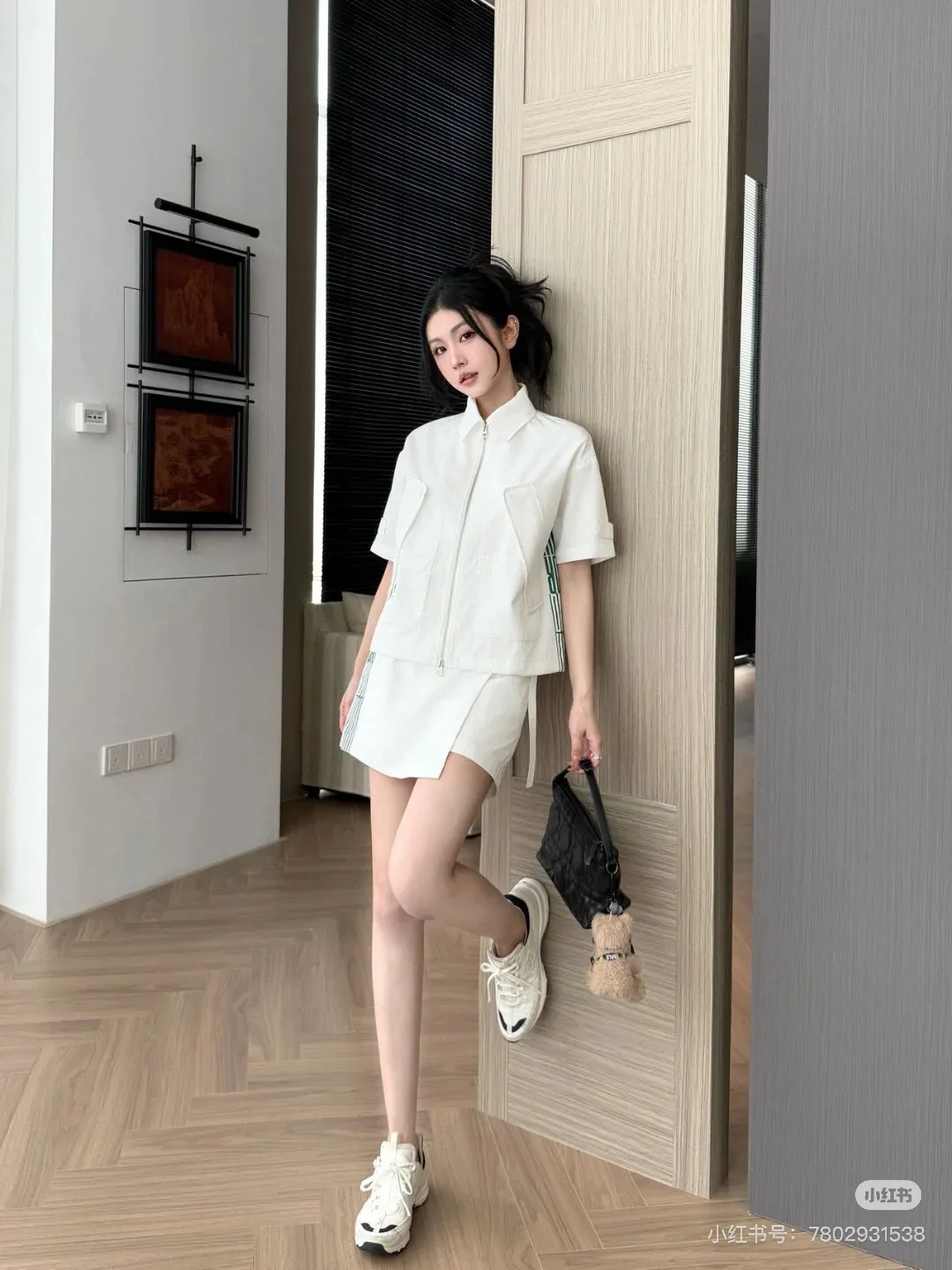 Коллекция включает безрукавную поло-майку, топ с коротким рукавом и короткую юбку, что позволяет легко сочетать вещи между собой. Размеры S, M и L обеспечивают комфортную посадку для различных типов фигур. Брюки идеально подходят для современного городского стиля, а комбинации с кроссовками или минималистичной обувью подчеркивают спортивный характер наряда.