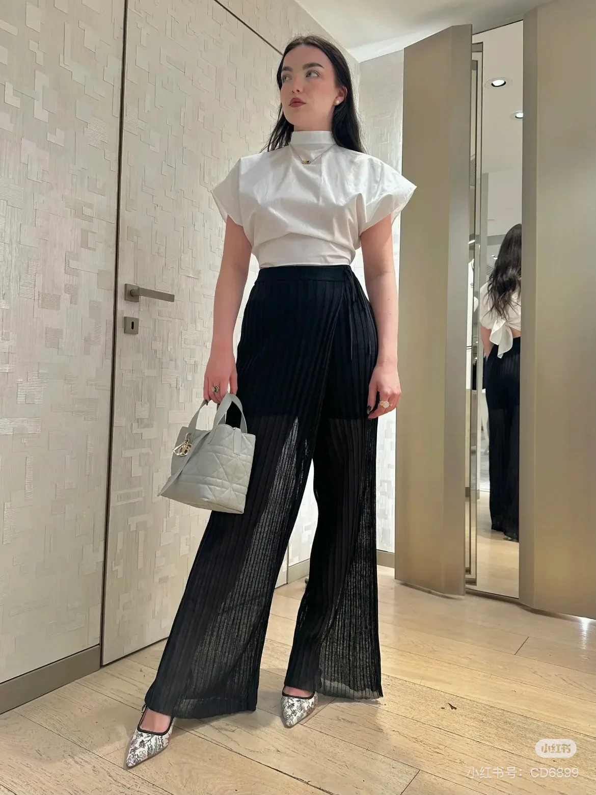Верх плотно облегает тело, обеспечивая шелковистое ощущение, а брюки имеют прямой и свободный крой, подходящий разным типам фигуры. Комплект превосходно сочетается с нейтральной обувью и минималистичными аксессуарами, подходит как для повседневной, так и для нарядной носки.
