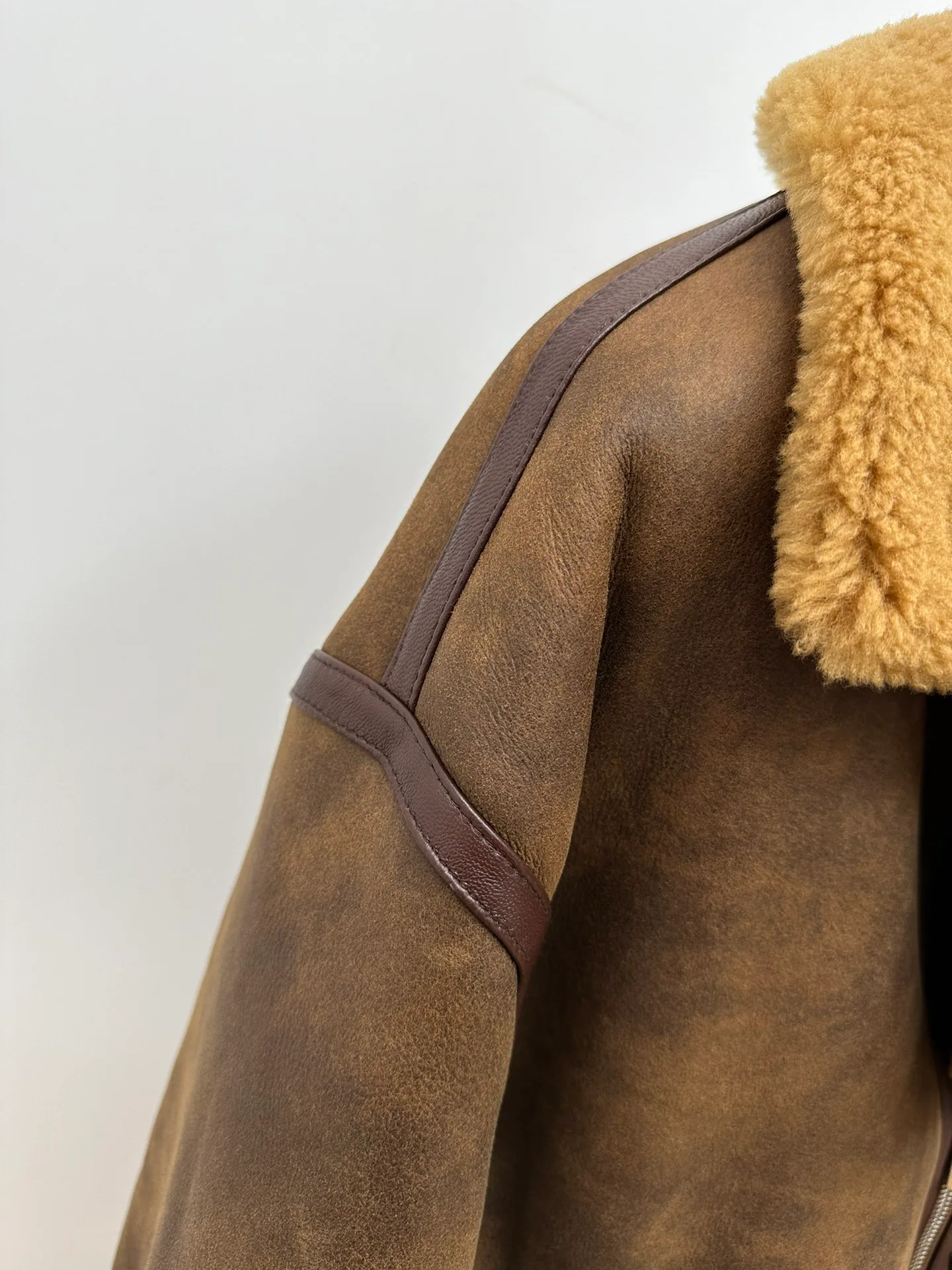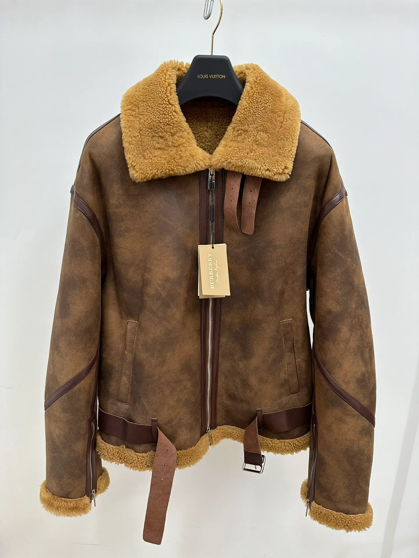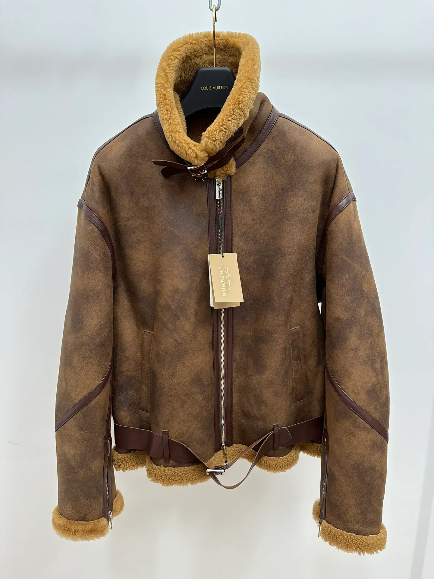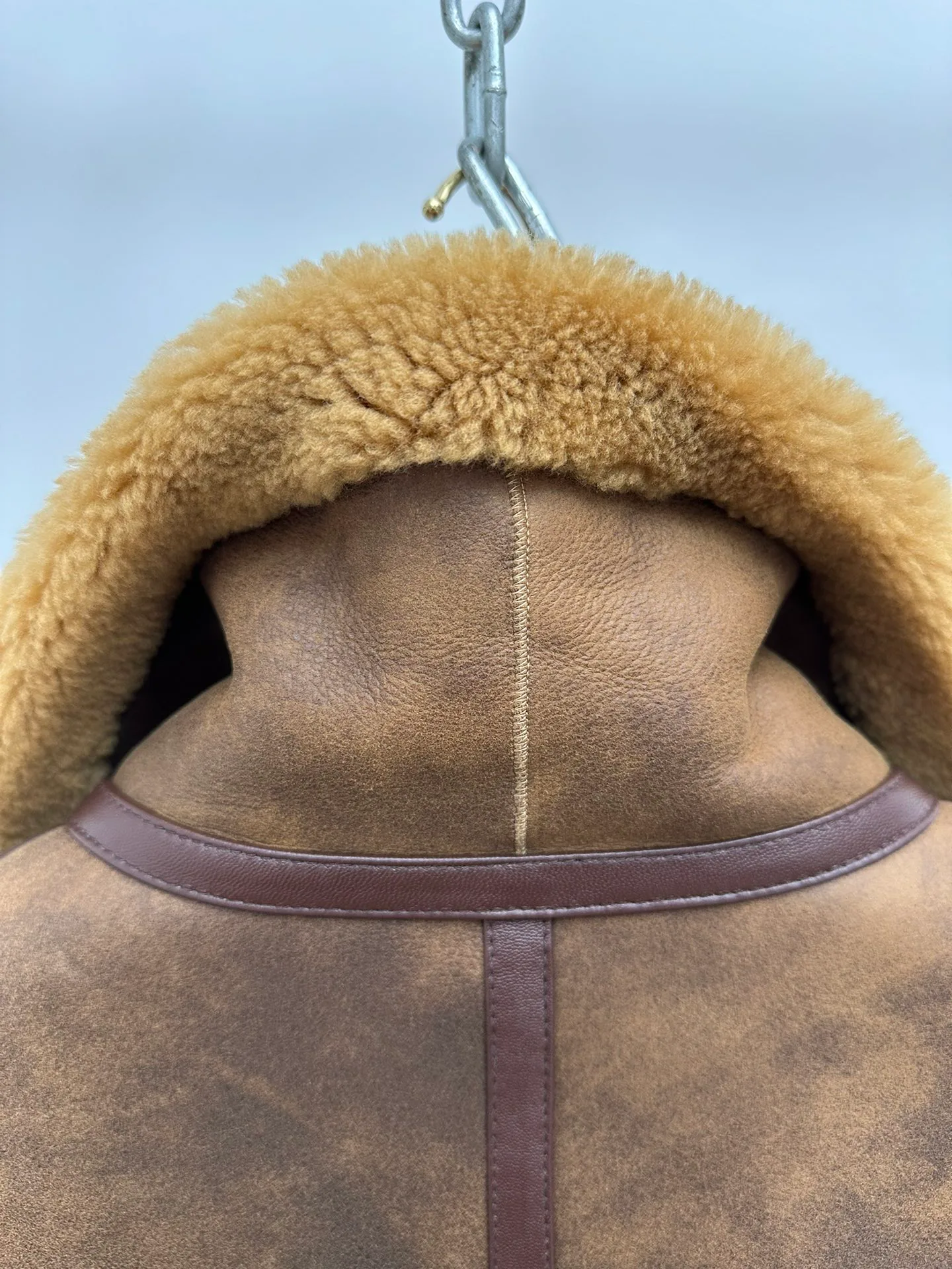 Пальто представлено в размерах EU 48–56. Благодаря свободному силуэту оно комфортно сидит на различных типах фигуры. Уход за овчиной требует профессиональной обработки; рекомендуется чистка у специалистов, хранение на плечиках в сухом месте, избегая влаги и источников тепла.