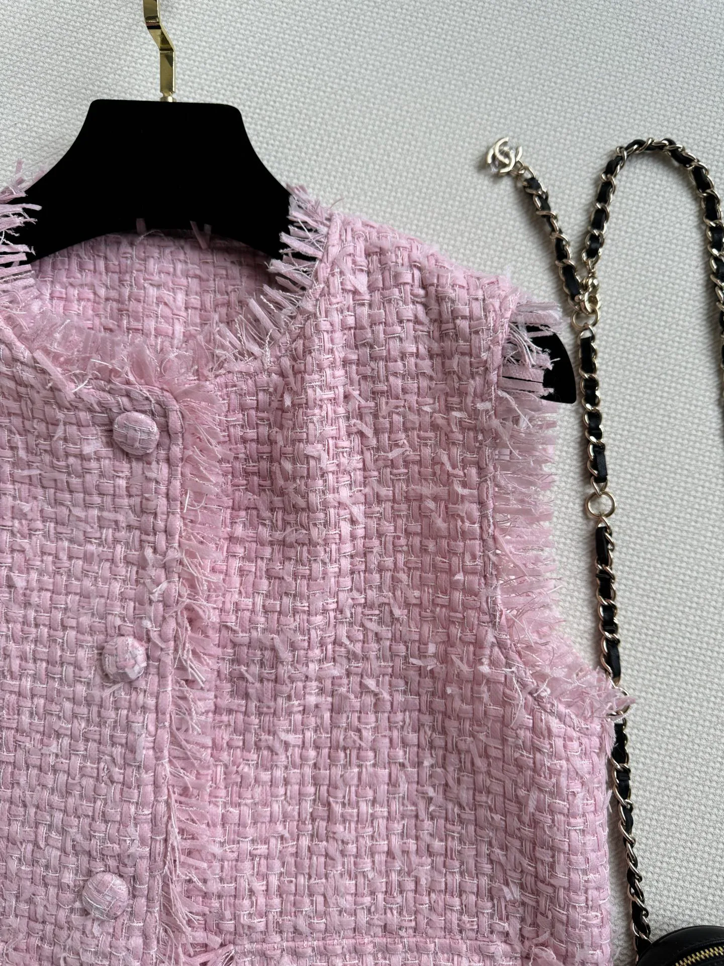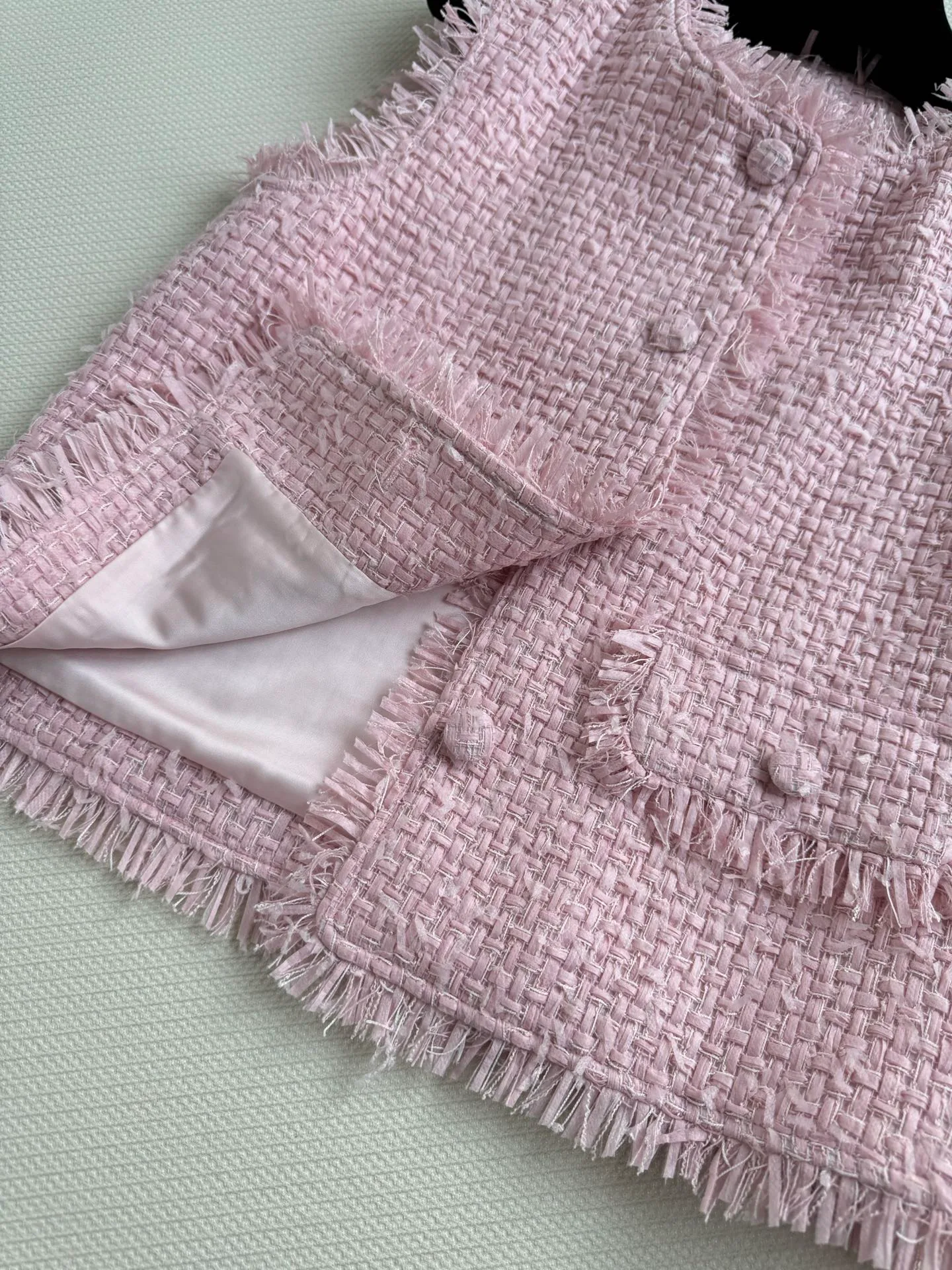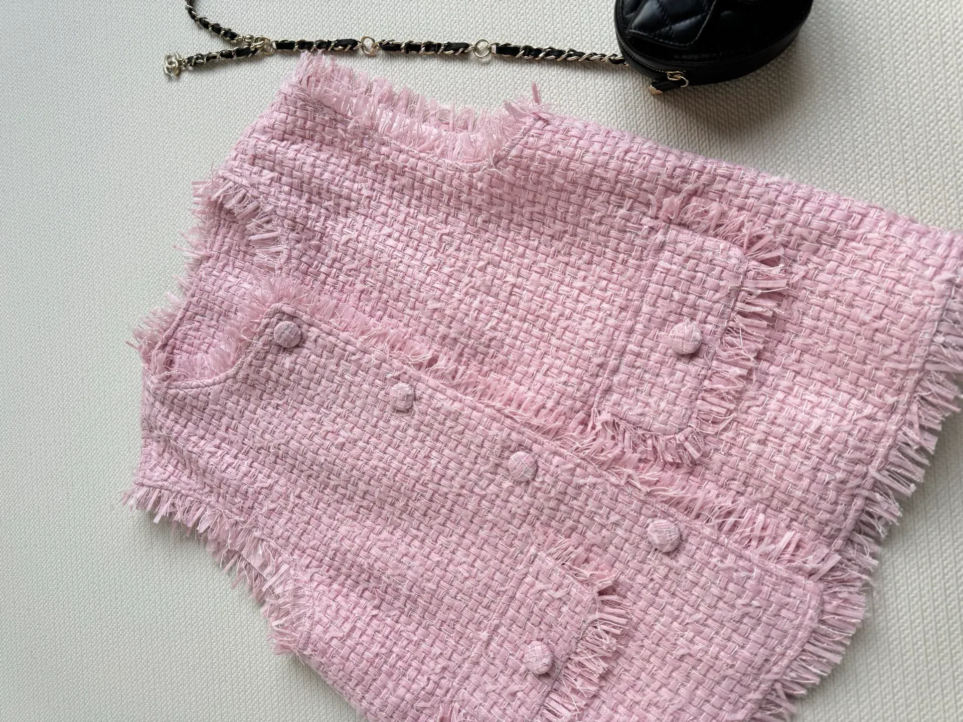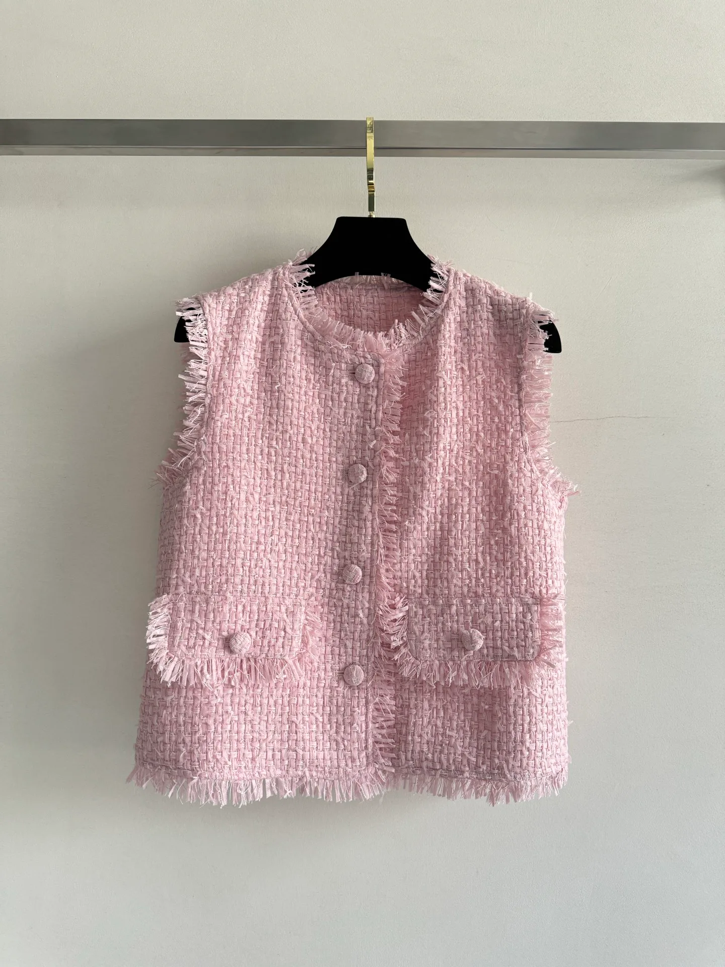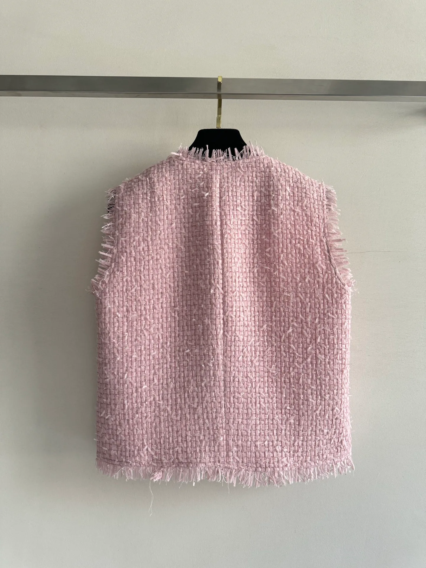 Уникальная грубая фактура ткани, а также ручная обработка добавляют изделию изысканности и оригинальности. Жилет представлен в нежном розовом цвете, который не только омолодит образ, но и придаст ему элегантности и утонченности.