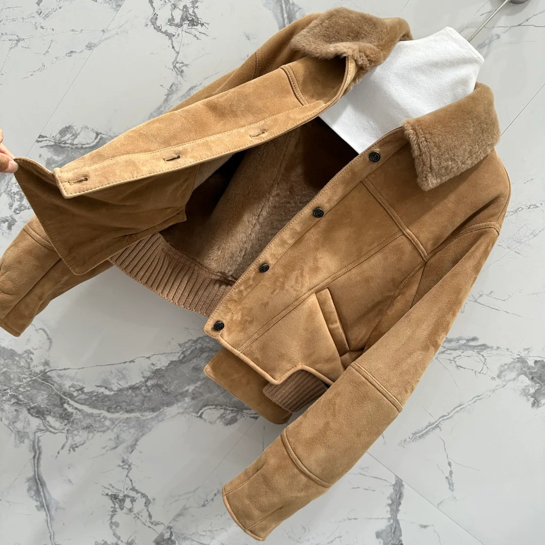 Доступны размеры S, M и L. Примерные параметры для размера M: ширина груди — 108 см, плечи — 46 см, длина рукава — 57 см, общая длина изделия — 48 см. Подкладка с меховым слоем создает дополнительный уют и тепло.