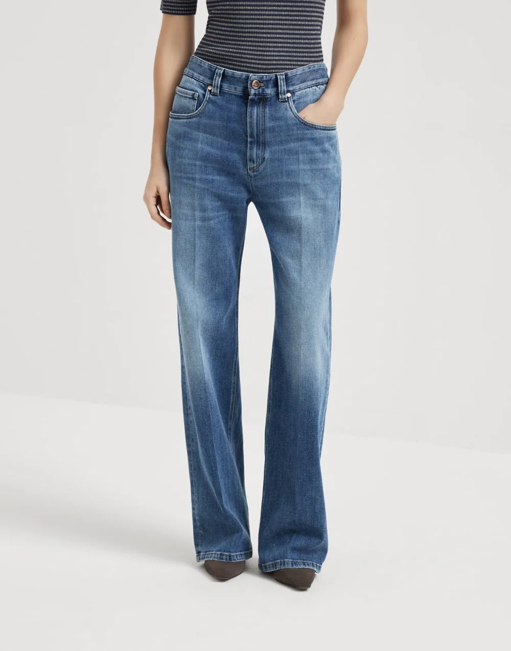 Модель обладает традиционным пятикарманным стилем и застежкой на молнию с эргономичной верхней частью. Джинсы сохраняют форму после стирок благодаря простой подгонке. Для ухода рекомендована деликатная стирка в холодной воде, с сушкой на воздухе и без отбеливания.