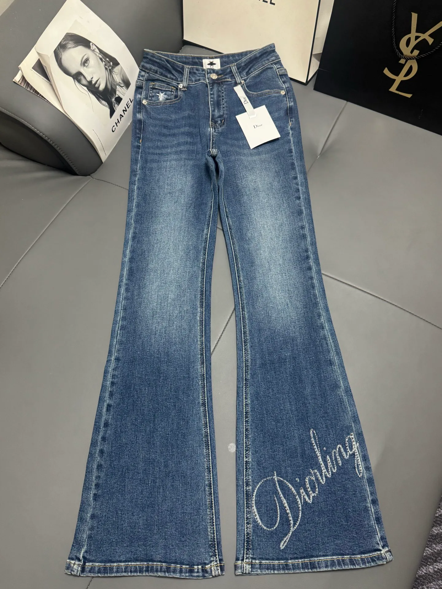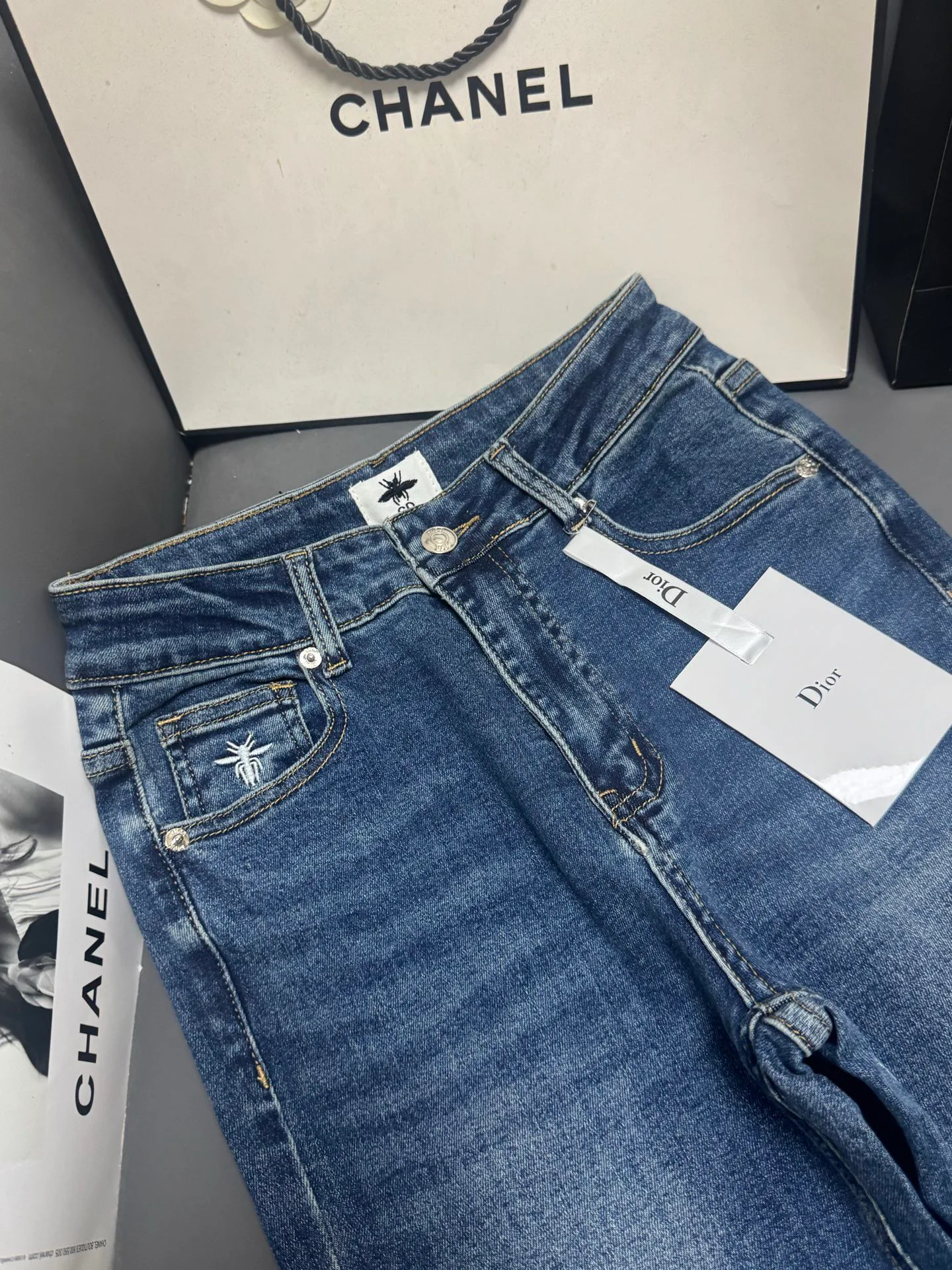 Декорированная стразами ткань с логотипом Dior подчеркнет ваш стиль. Ультра-синий оттенок достигается двойной энзимной стиркой, что придает глубину цвета. Джинсы доступны в размерах S, M, L и подходят для сочетания с различными верхами и обувью.