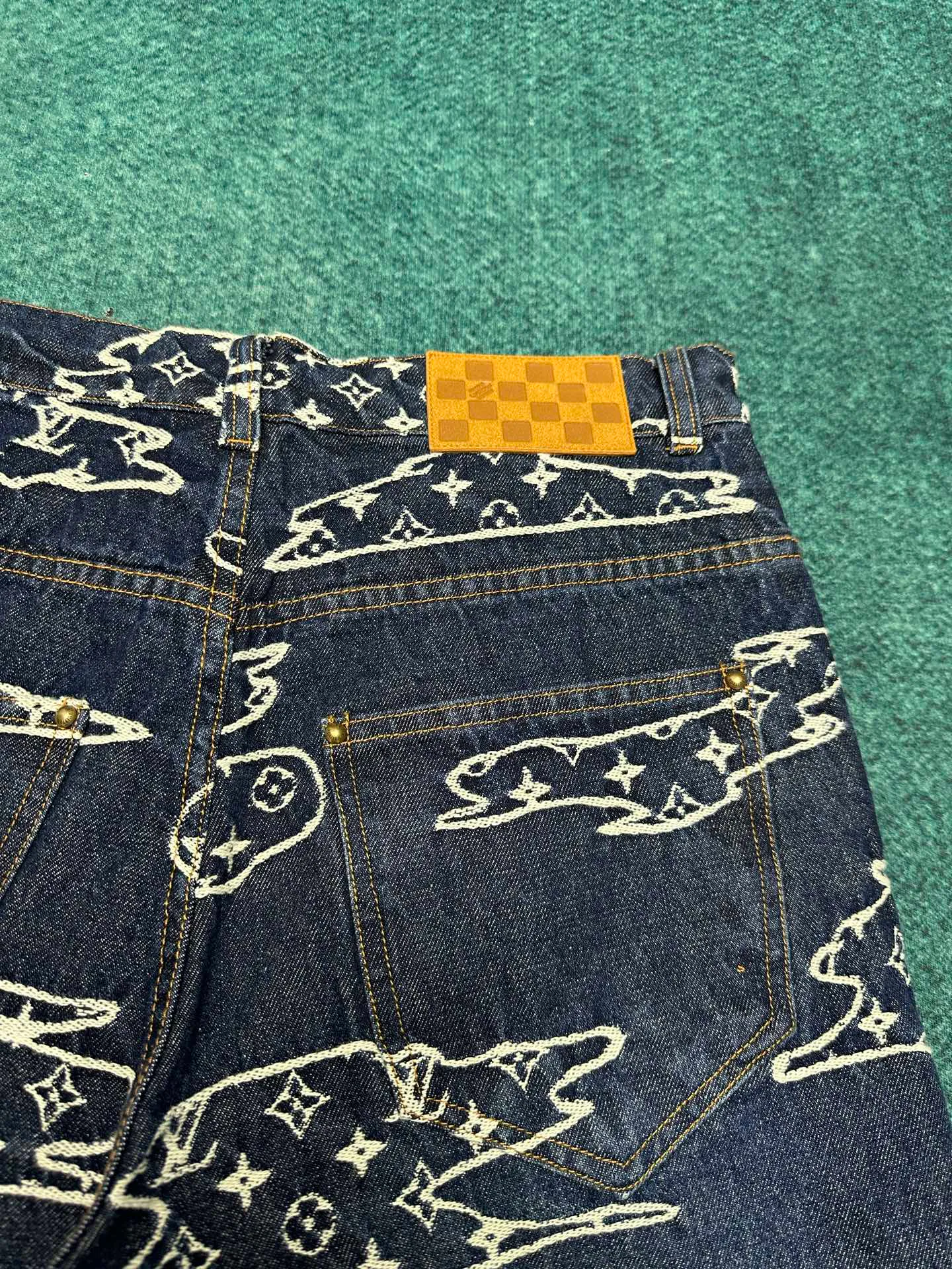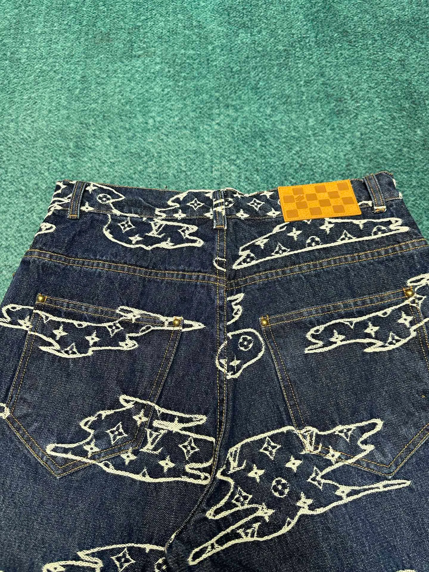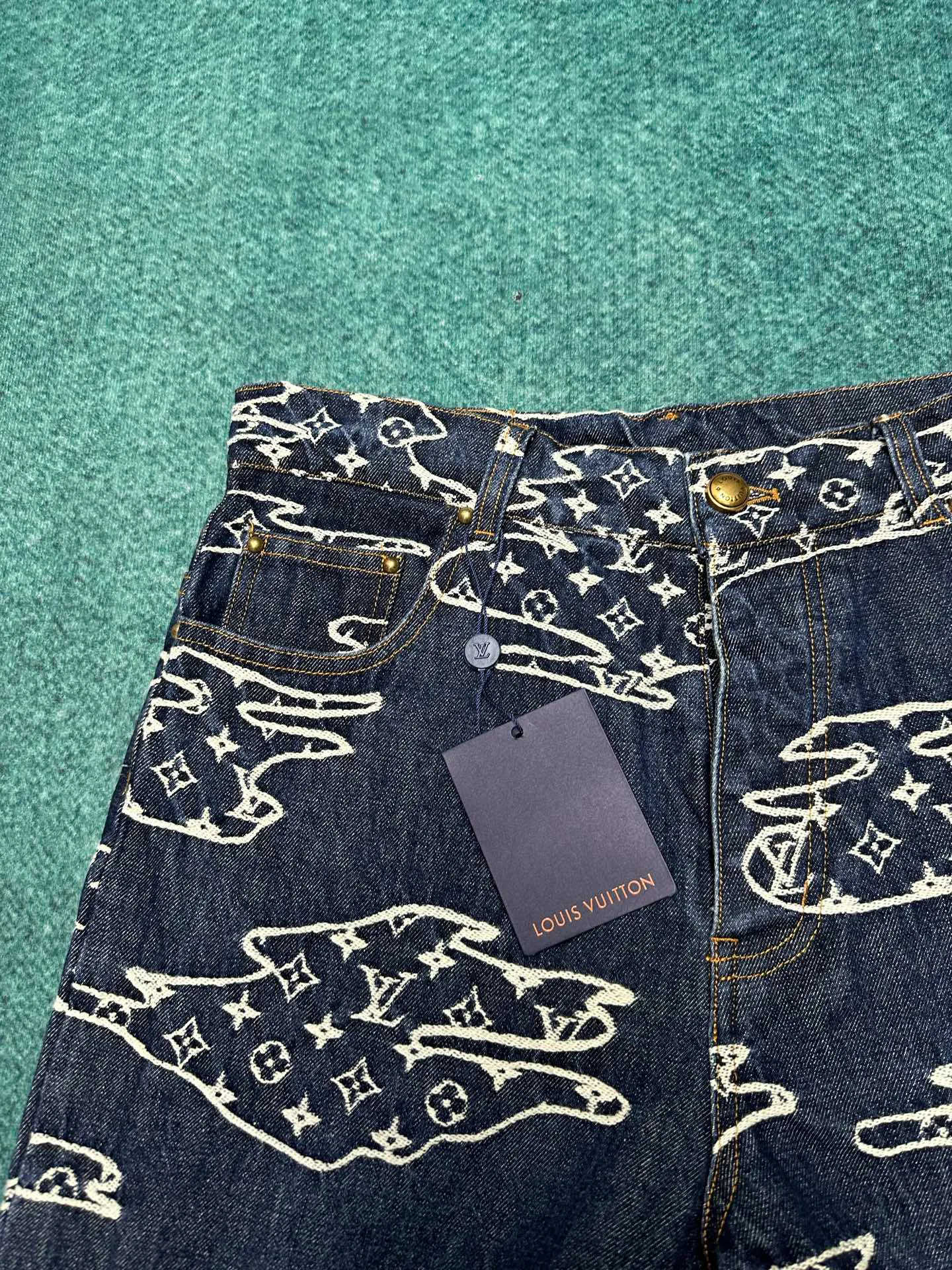 Изделие изготовлено из качественного денима с присадкой и представлено в размерах S, M, L и XL. На задней талии размещена мини-этикетка из натуральной замши с мотивом Damier. Пуговицы с перламутровым блеском и металлические заклепки добавляют выразительности. Рекомендуется щадящая стирка на низкой температуре для сохранения фурнитуры.