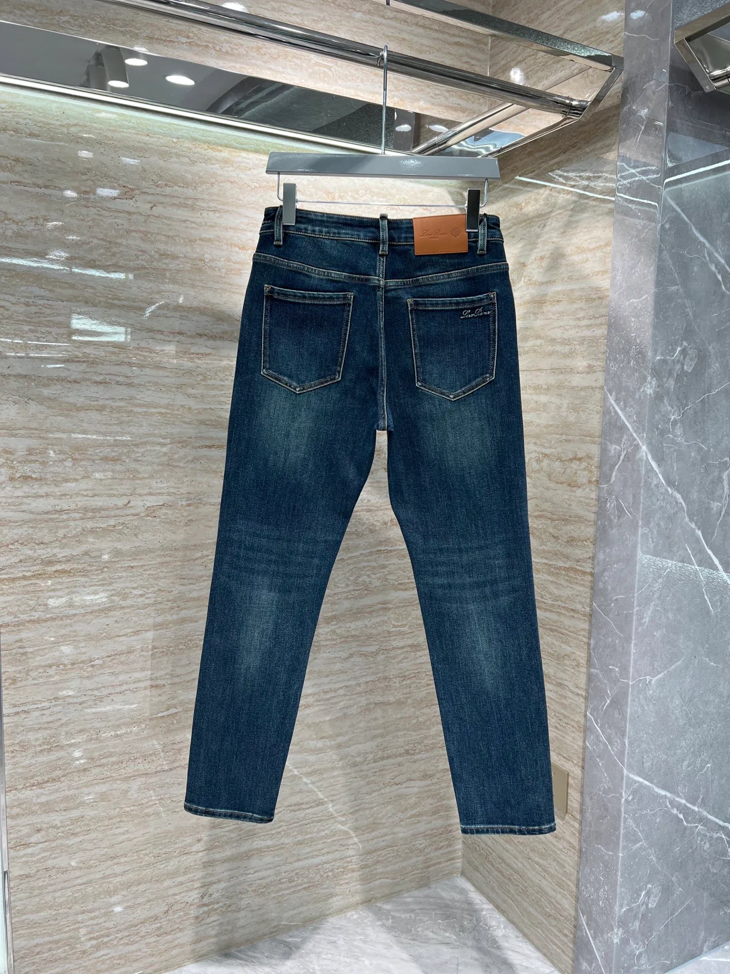 Модель имеет классический силуэт с чистыми линиями и минималистичным дизайном. Зауженность по линии создаёт стройный силуэт, подходящий как для повседневных, так и для нарядных образов. Цвет изделия — синий (индиго-оттенок) с джинсовым финишем, отделка и швы подчеркивают премиальный характер модели.