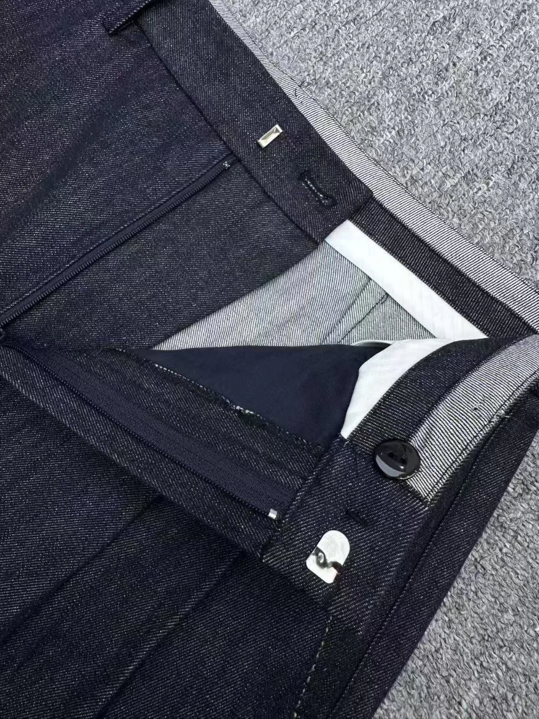 Брюки имеют высокую талию и широкий крой, создающий эффект длинных, стройных ног. Застежка спереди выполнена на молнии и крючке, боковые косые карманы и задние накладные карманы добавляют функциональности. Модель доступна в размерах 36, 38, 40 и 42, подходит для осени.