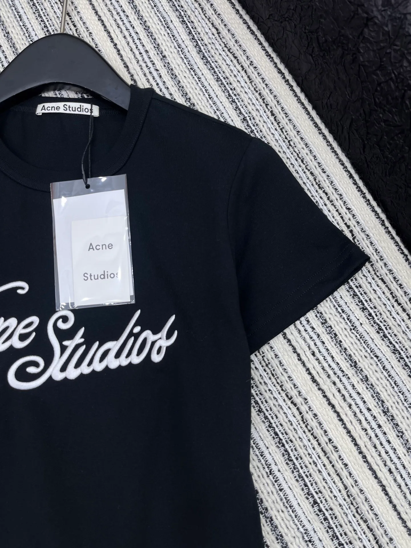 Футболка доступна в классических белом и черном цветах, что позволяет легко комбинировать её с другими элементами одежды. Она представлена в размерах S, M и L, что делает её подходящей для различных типов фигур.