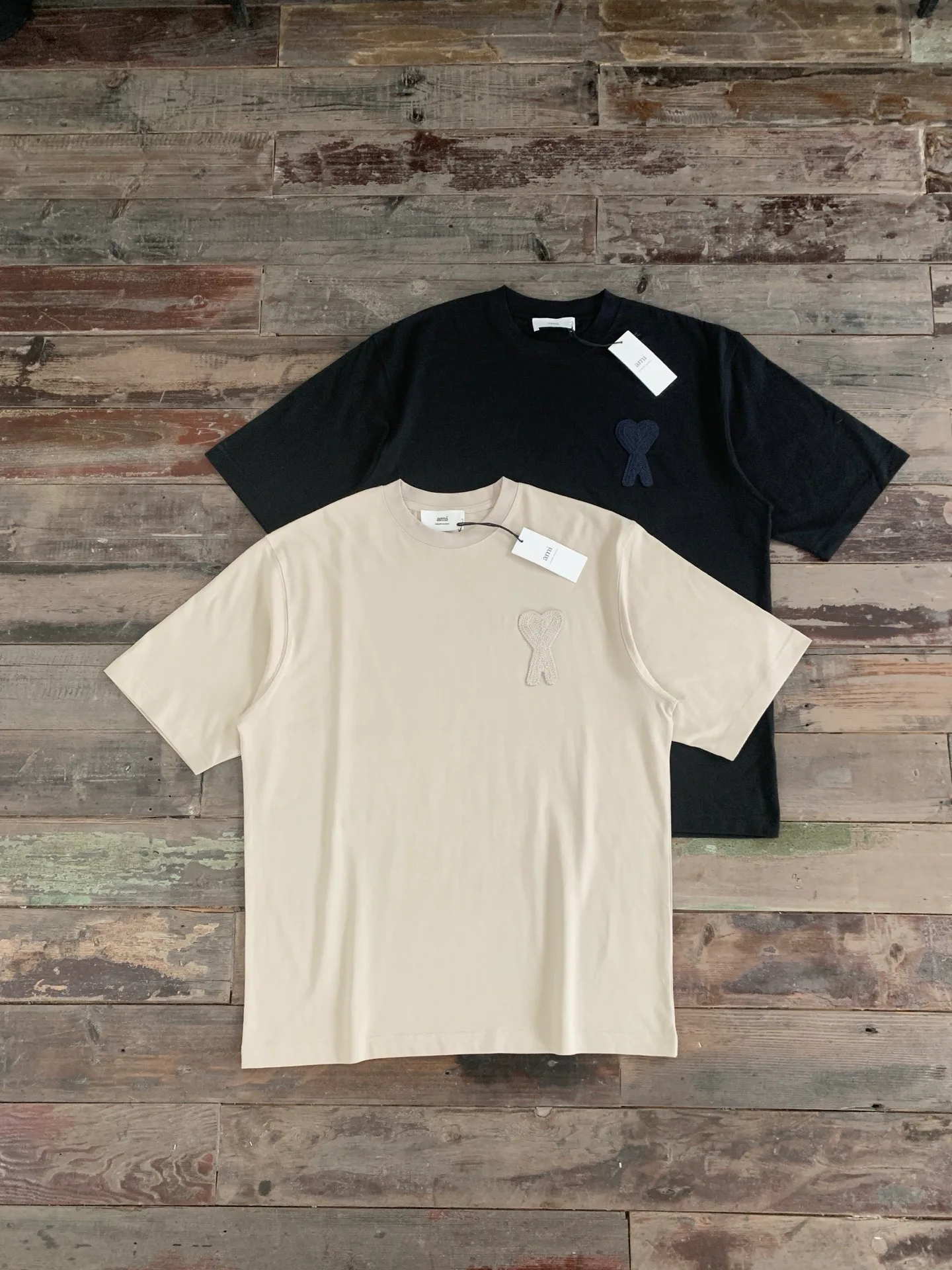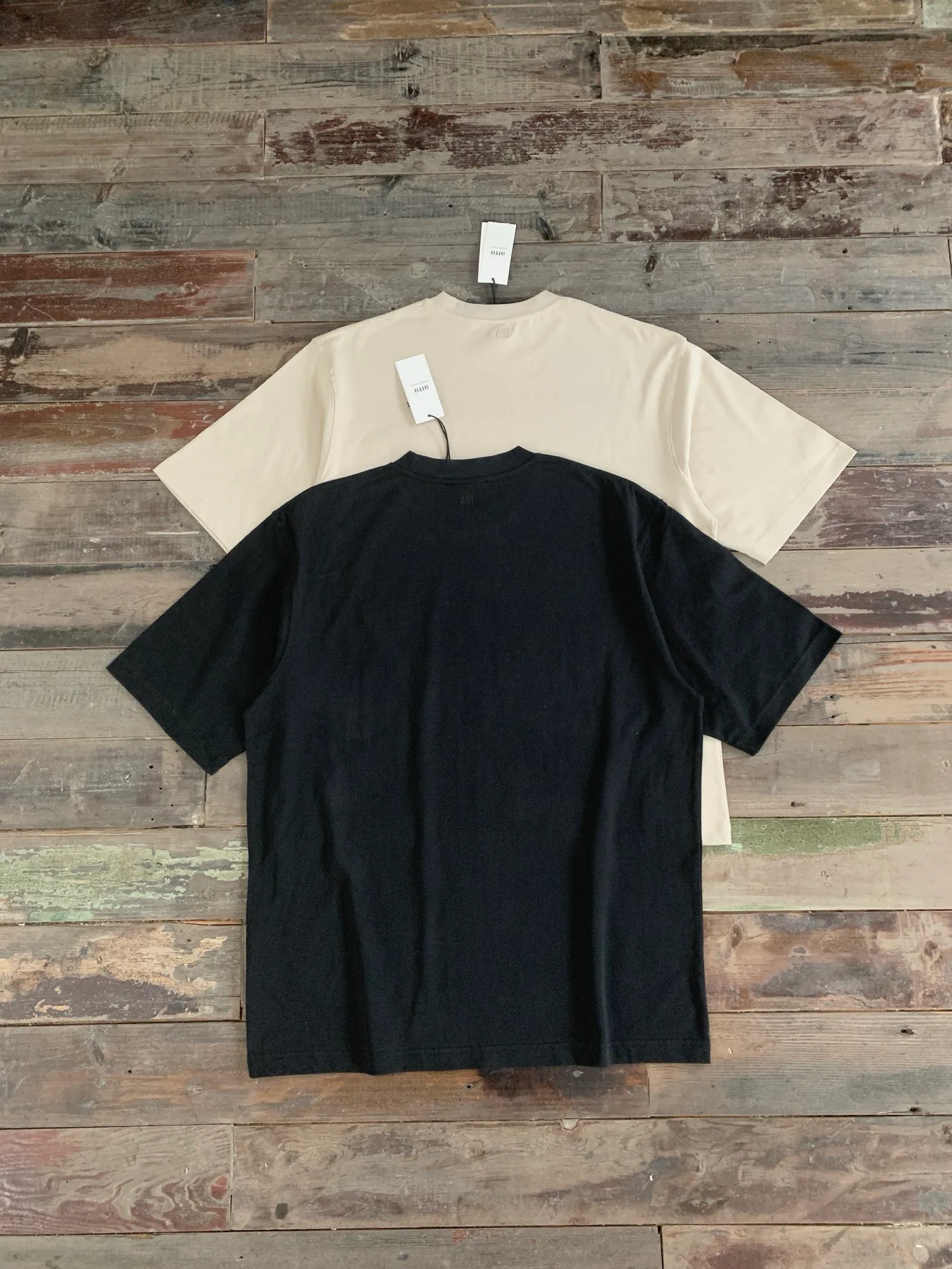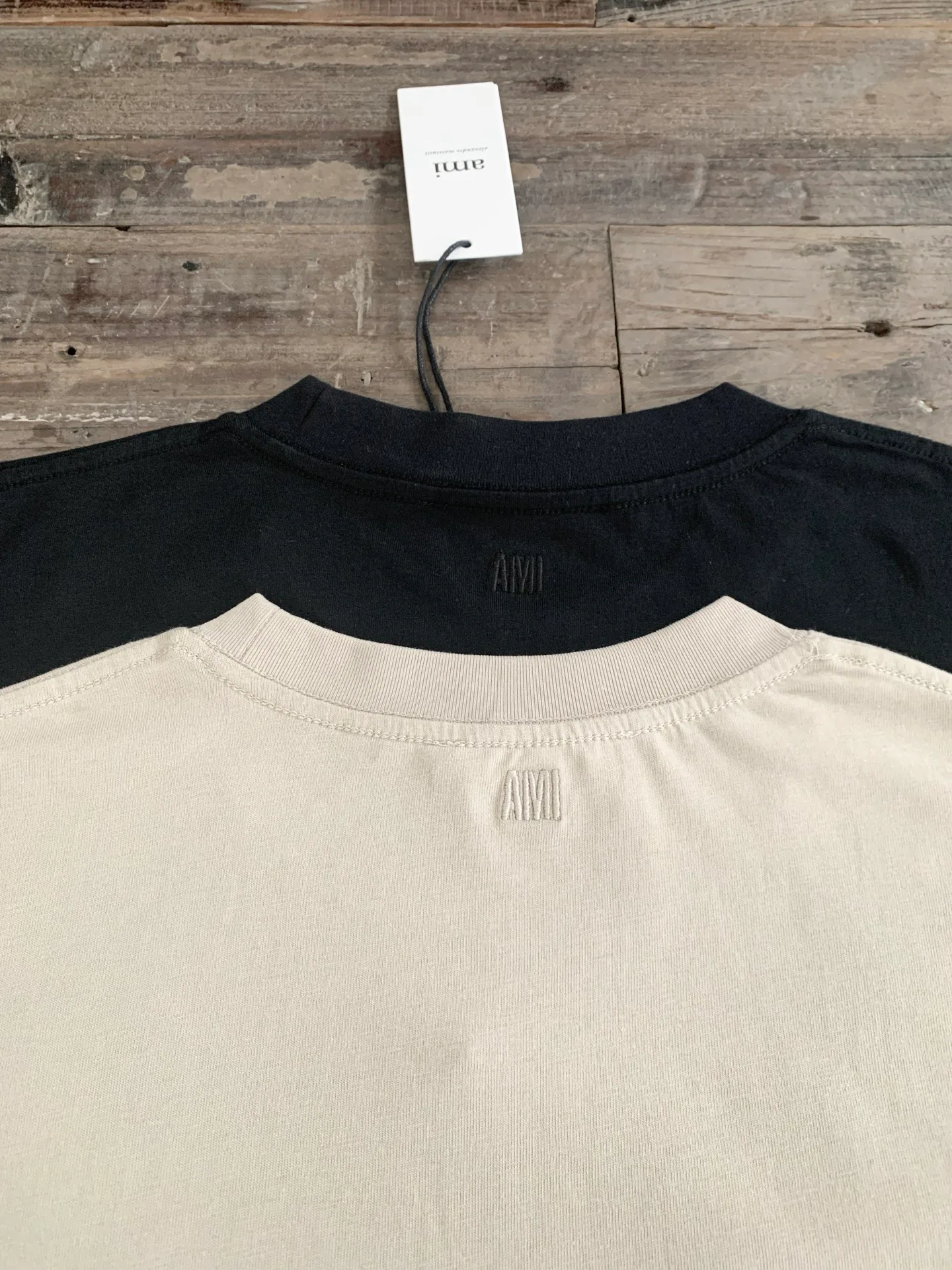 На спинке в области воротника расположен вышитый логотип AMI. Расцветка футболки выполнена в классических и элегантных оттенках, подчеркивающих сдержанный, но роскошный вид. Доступны размеры S, M, L, XL и цвета: черный, бежевый.