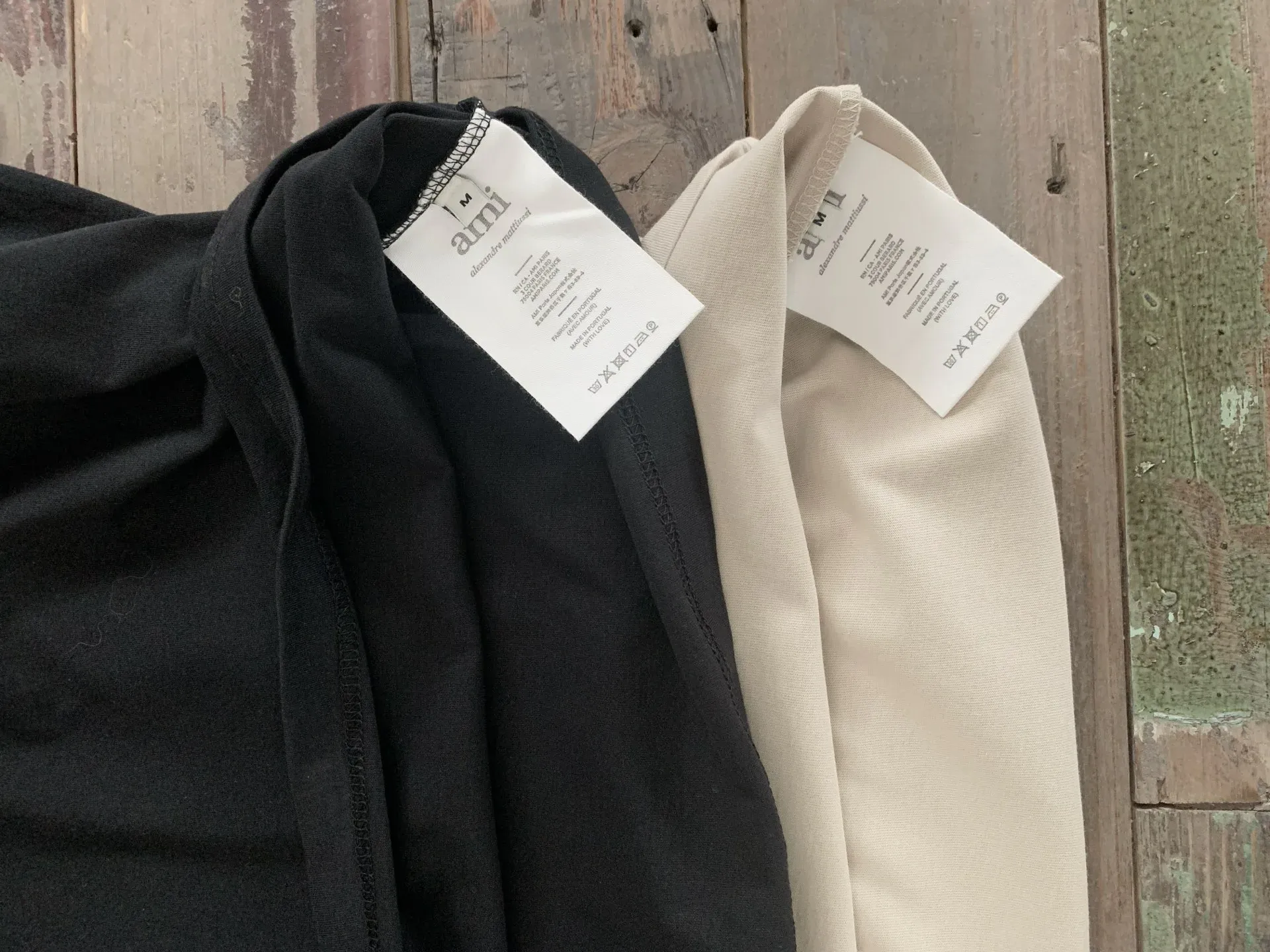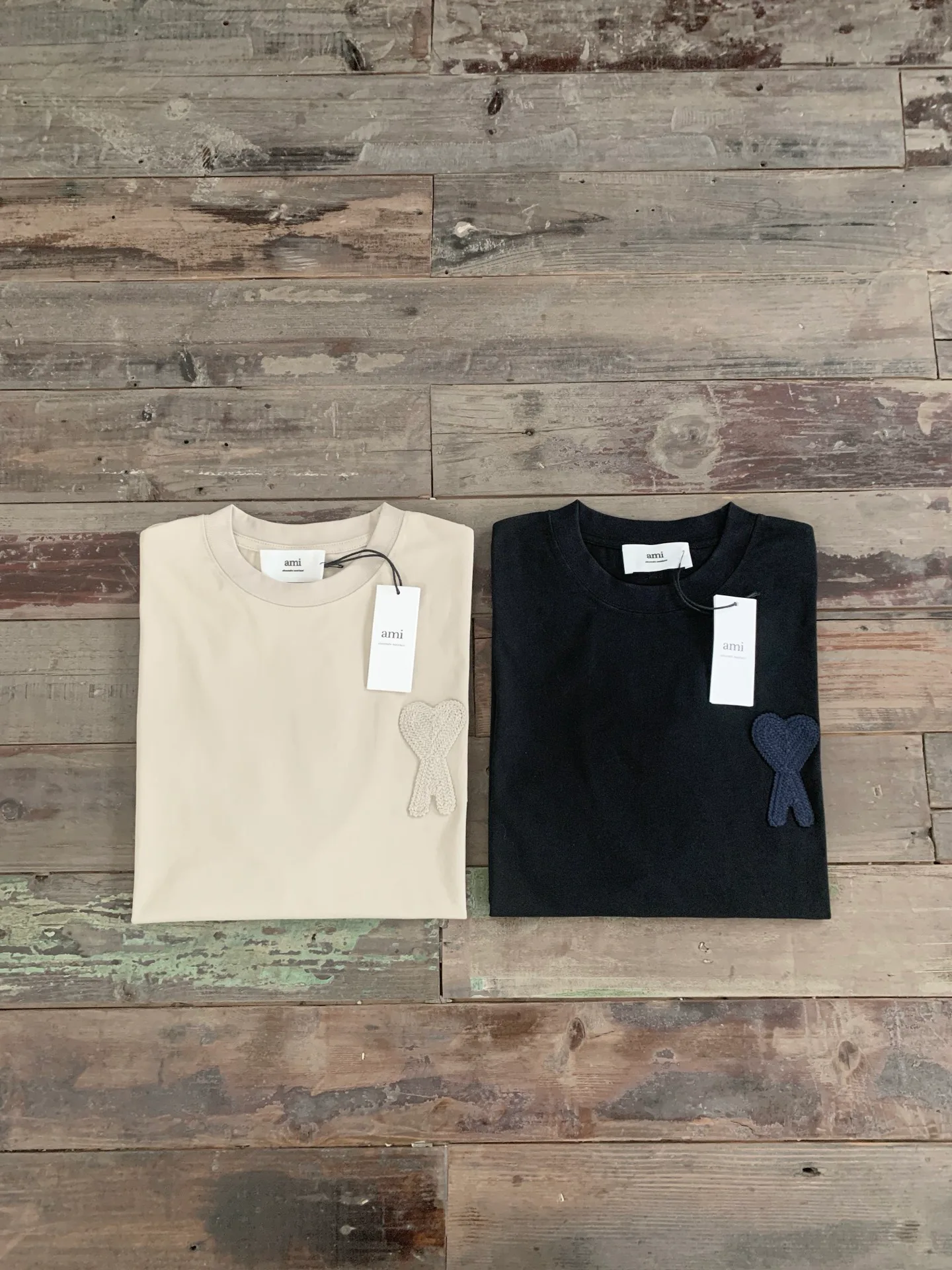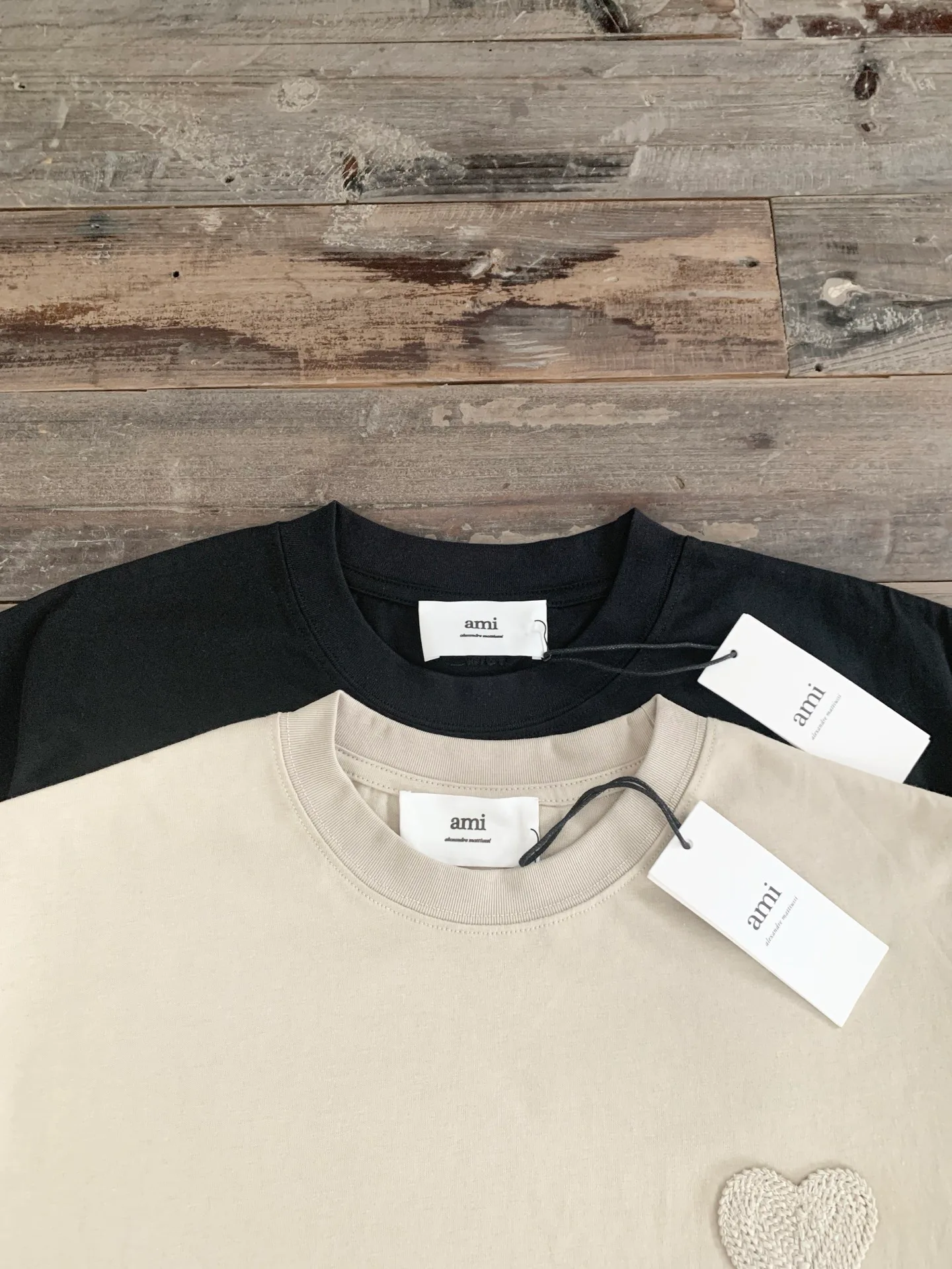 На спинке в области воротника расположен вышитый логотип AMI. Расцветка футболки выполнена в классических и элегантных оттенках, подчеркивающих сдержанный, но роскошный вид. Доступны размеры S, M, L, XL и цвета: черный, бежевый.