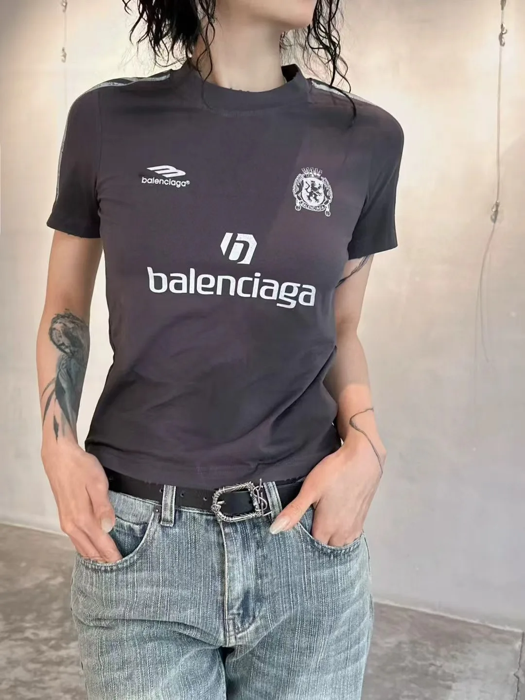 Модель доступна в двух цветовых вариантах: сером и красном, а также предлагается в трех размерах: S, M и L. Эта футболка станет отличным дополнением вашего спортивного гардероба и подойдет как для повседневных образов, так и для активного отдыха. Выражайте свою любовь к футболу стильно с помощью этой футболки от BALENCIAGA!