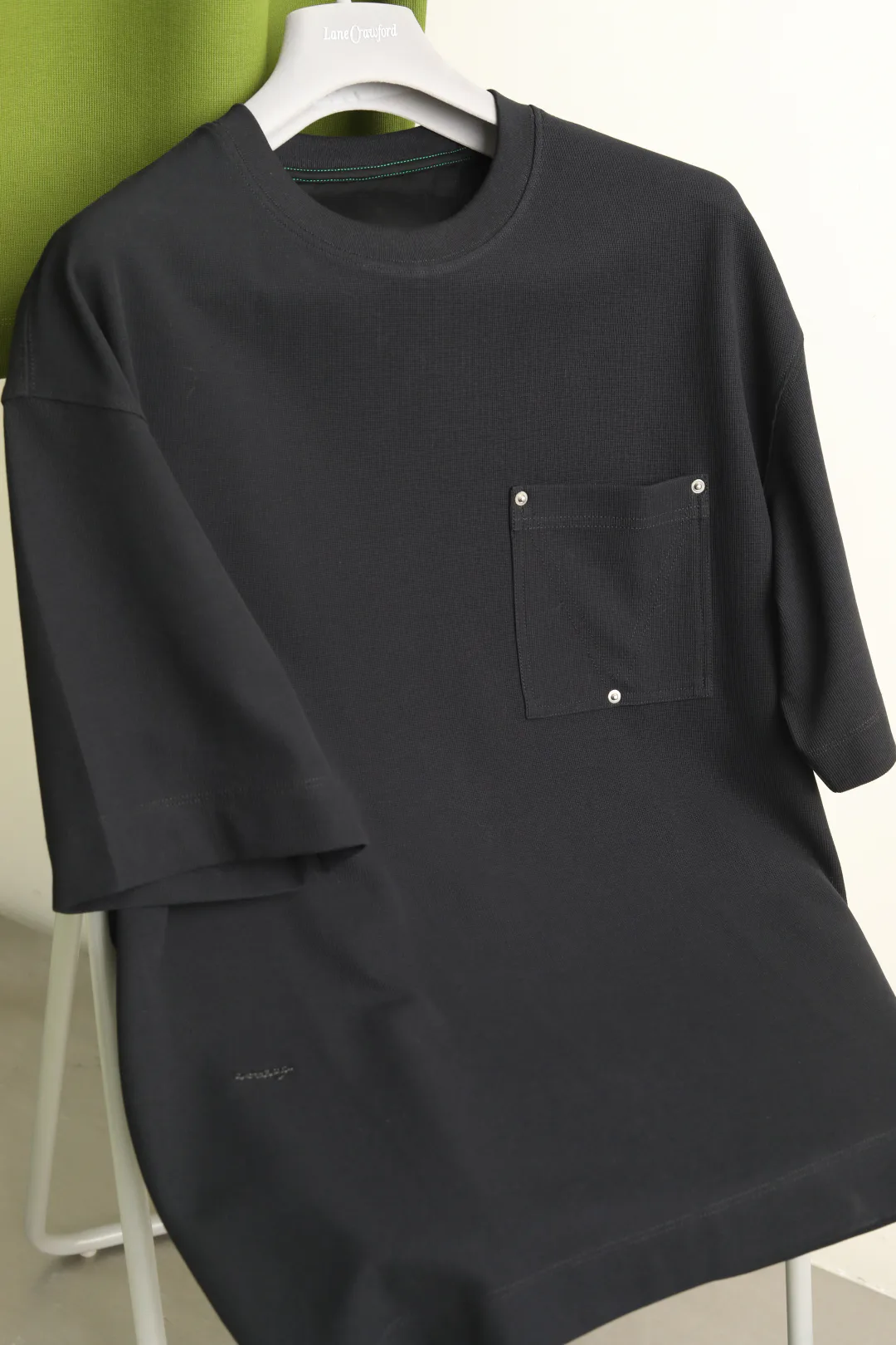 Дизайн минималистичный, с деталями: вафельная текстура и контрастные швы, которые придают изделию выразительность. Объемный крой и стоячий воротник создают уют и свободный силуэт.