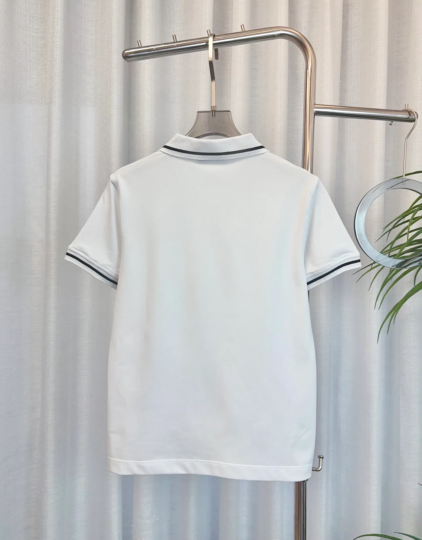 Футболка отличается стильным дизайном с контрастными цветами, что придает ей особую выразительность. Вышитый логотип добавляет изысканности и подчеркивает высокий статус изделия. Модель выполнена в универсальном белом цвете, что делает ее легко комбинируемой с различной одеждой.