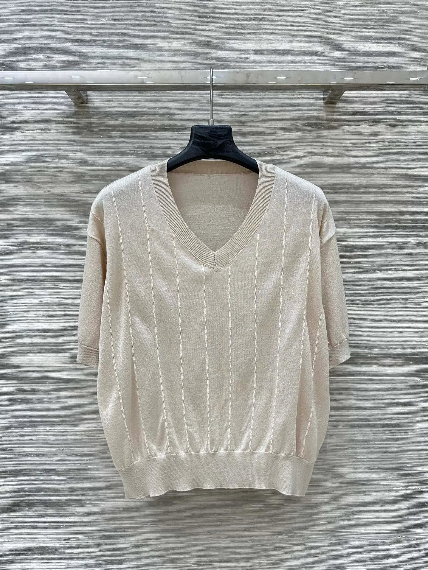 Особой изюминкой данной модели является элегантный дизайн — вручную пришитые пайетки добавляют элемент минималистичной роскоши, а полуспущенные рукава придают образу непринужденность и стиль. Футболка отлично сочетает в себе изысканный итальянский стиль и непринужденную элегантность.