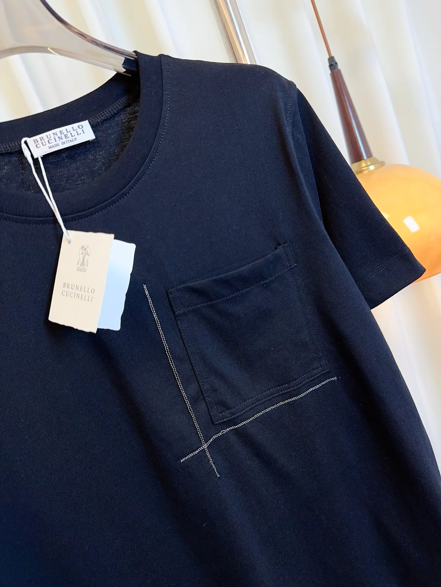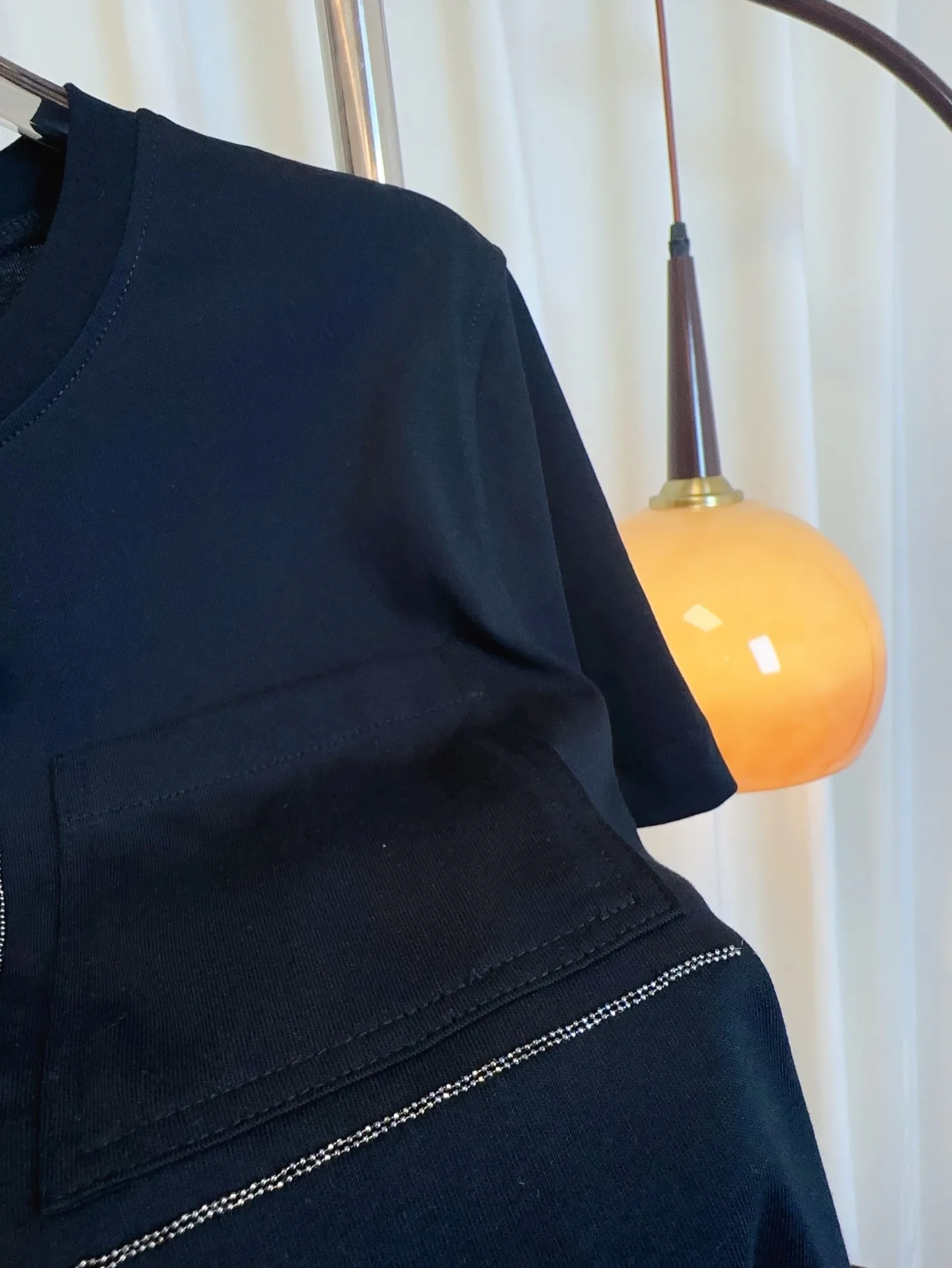 Футболка имеет практичный карман, добавляющий функциональность и оригинальность в дизайн. Элегантные вкрапления из стразов придают изделию изысканный вид, позволяя выделиться из толпы. Стильная и современная, она отлично подходит для создания модных образов.
