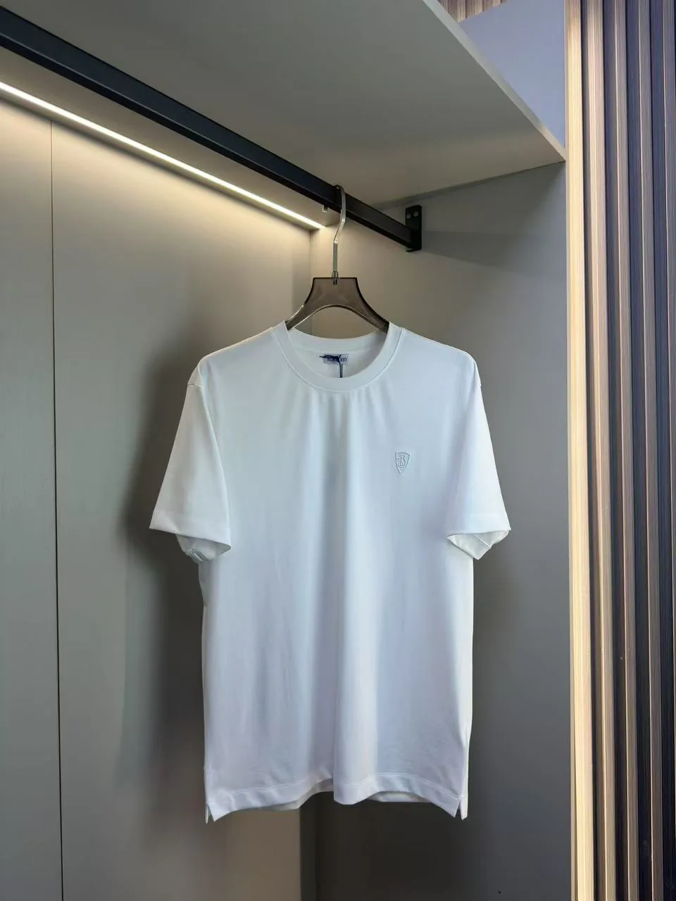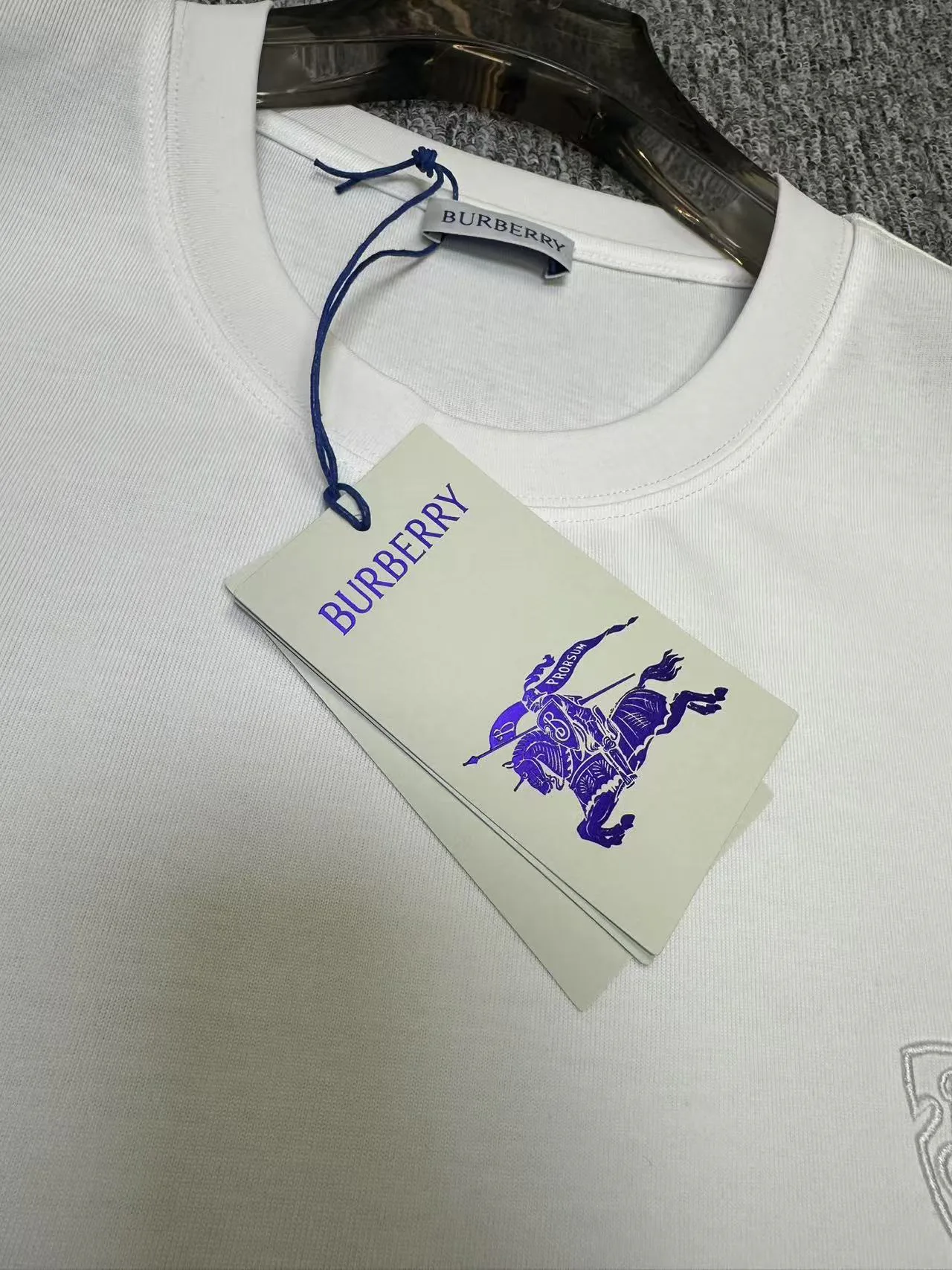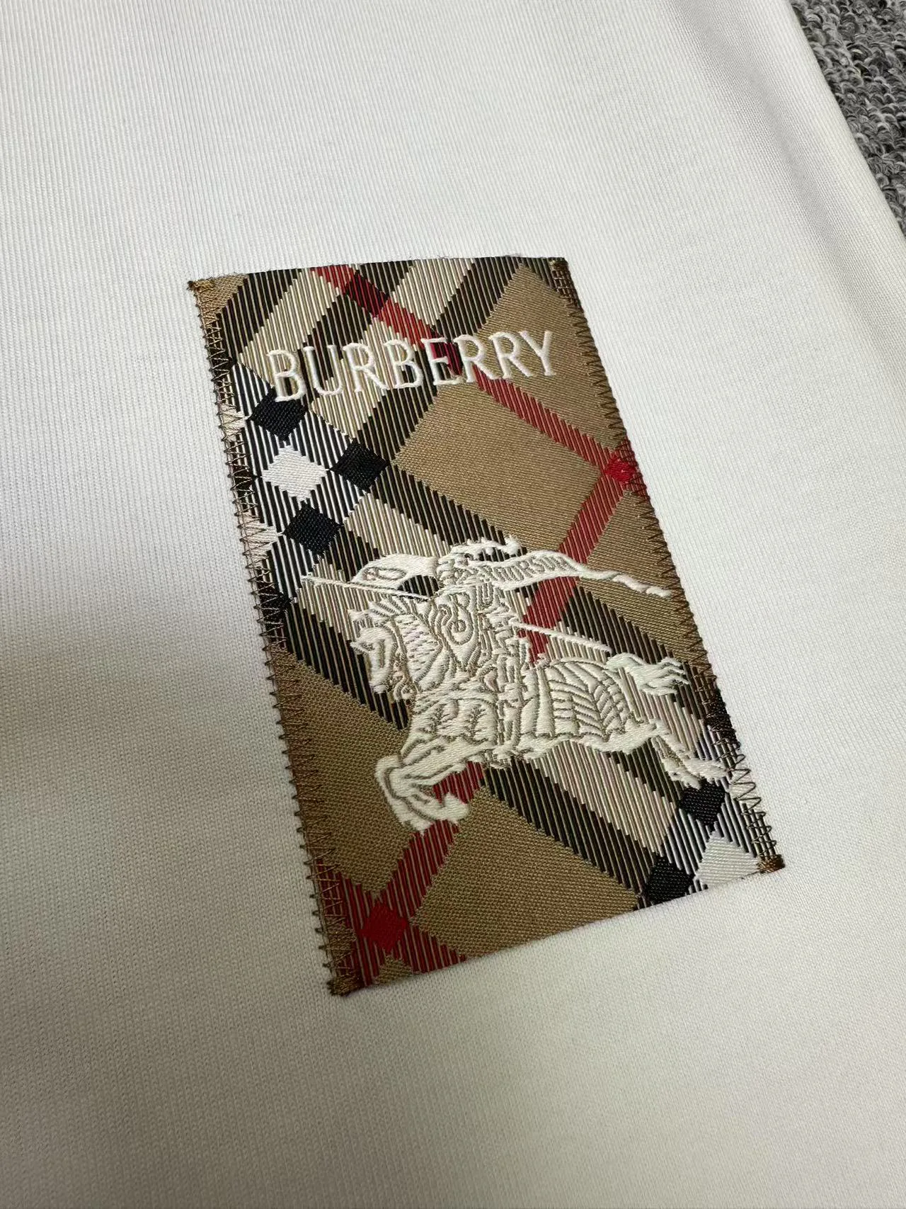 Футболка имеет слегка свободный силуэт, на груди украшена вышивкой нового кавалерийского герба BURBERRY, что подчеркивает классический стиль бренда. На спине футболки расположена известная клеймовая вышивка в виде классической клетки, что добавляет ей изысканности.
