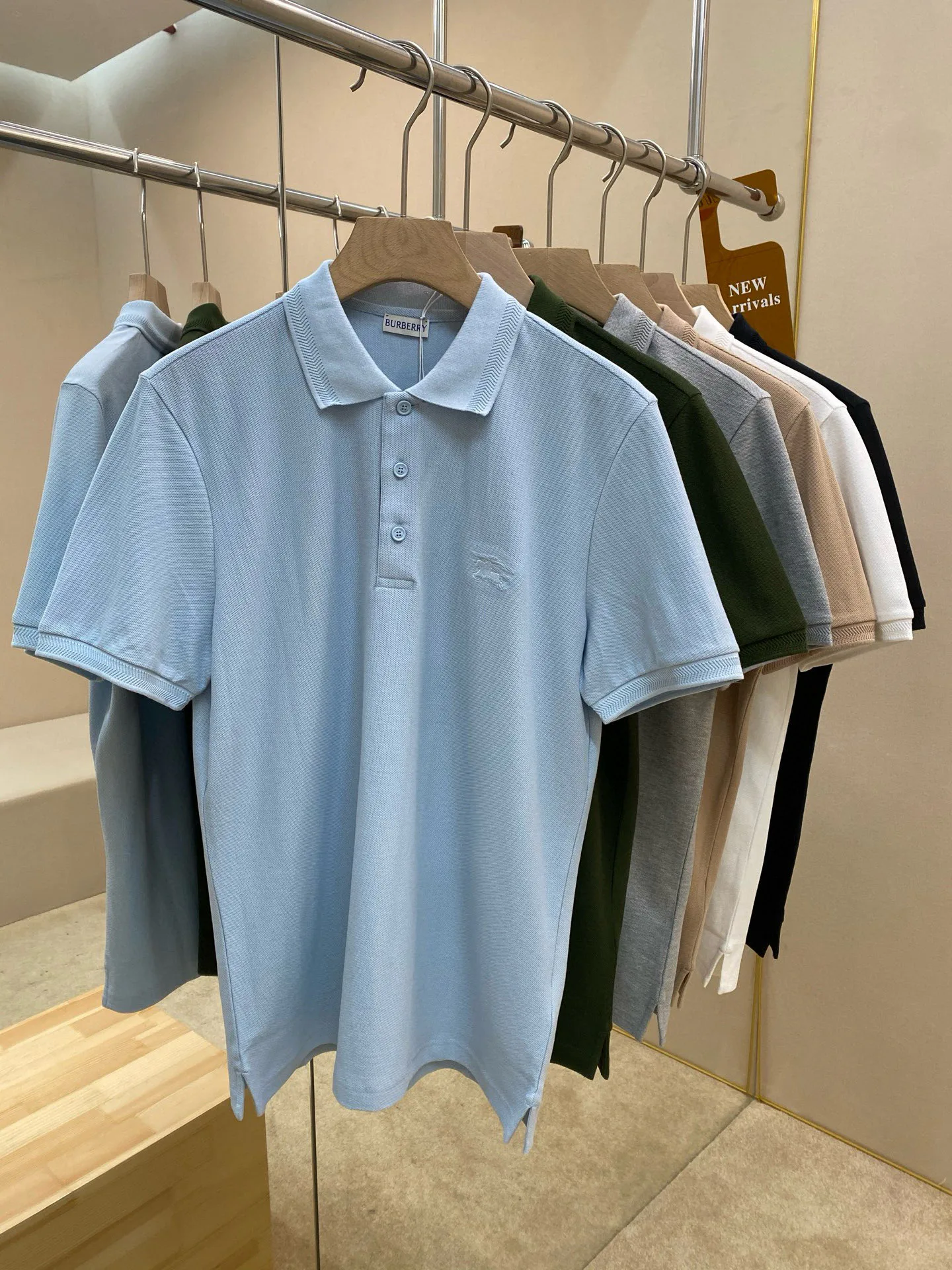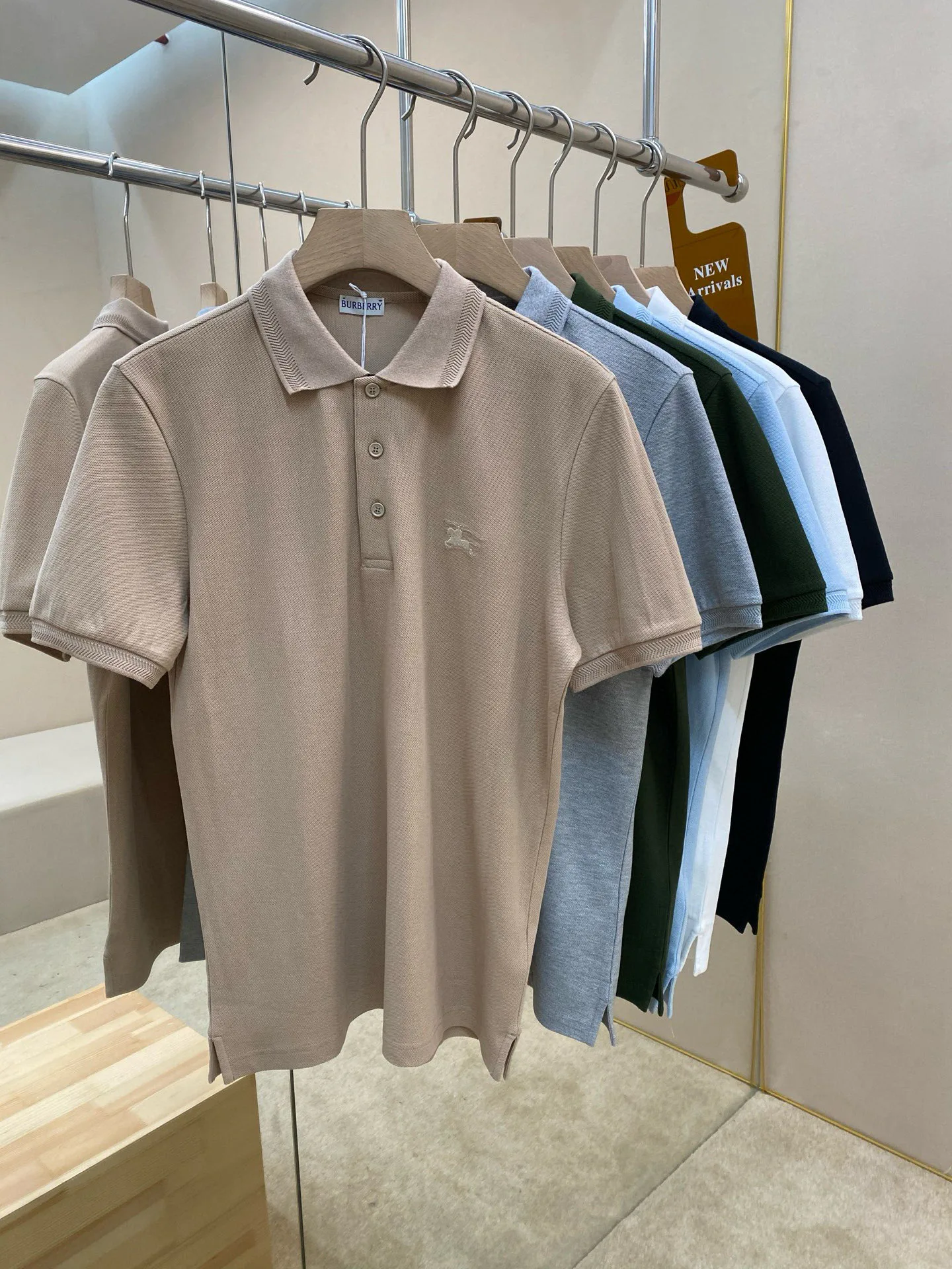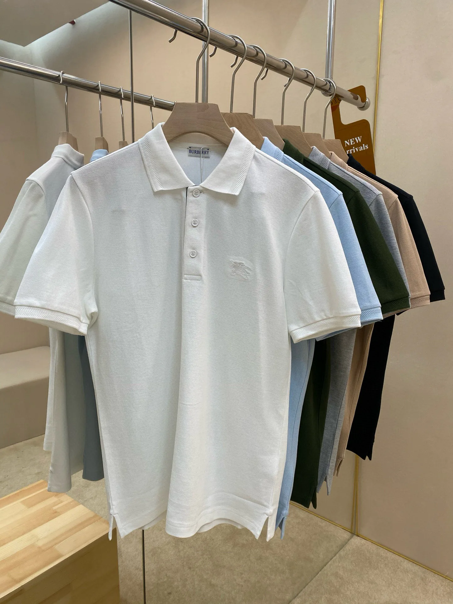 Поло имеет оригинальный дизайн с вышитым логотипом с изображением конного рыцаря на груди, что добавляет изысканности и характера. Оно представлено в современном приталенном силуэте, что делает его идеальным для создания стильных аутфитов. Застежка спереди оформлена уникальными пуговицами с буквенным обозначением "BBR", что также подчеркивает статус бренда.