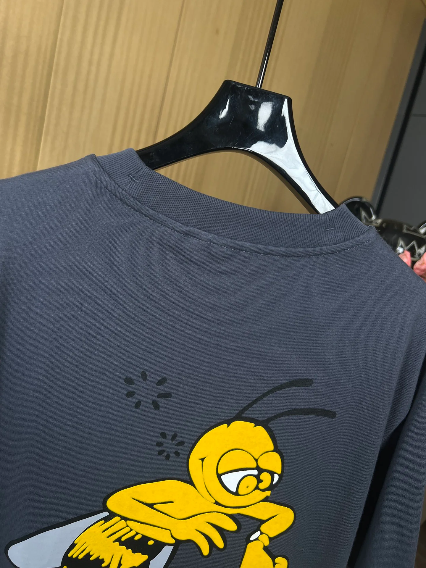На передней части изделия размещен фирменный логотип в виде стильной маленькой пчелы, а на спине — забавный графический рисунок пчелки, что придает футболке оригинальный и игривый вид. Футболка доступна в размерах S, M и L.