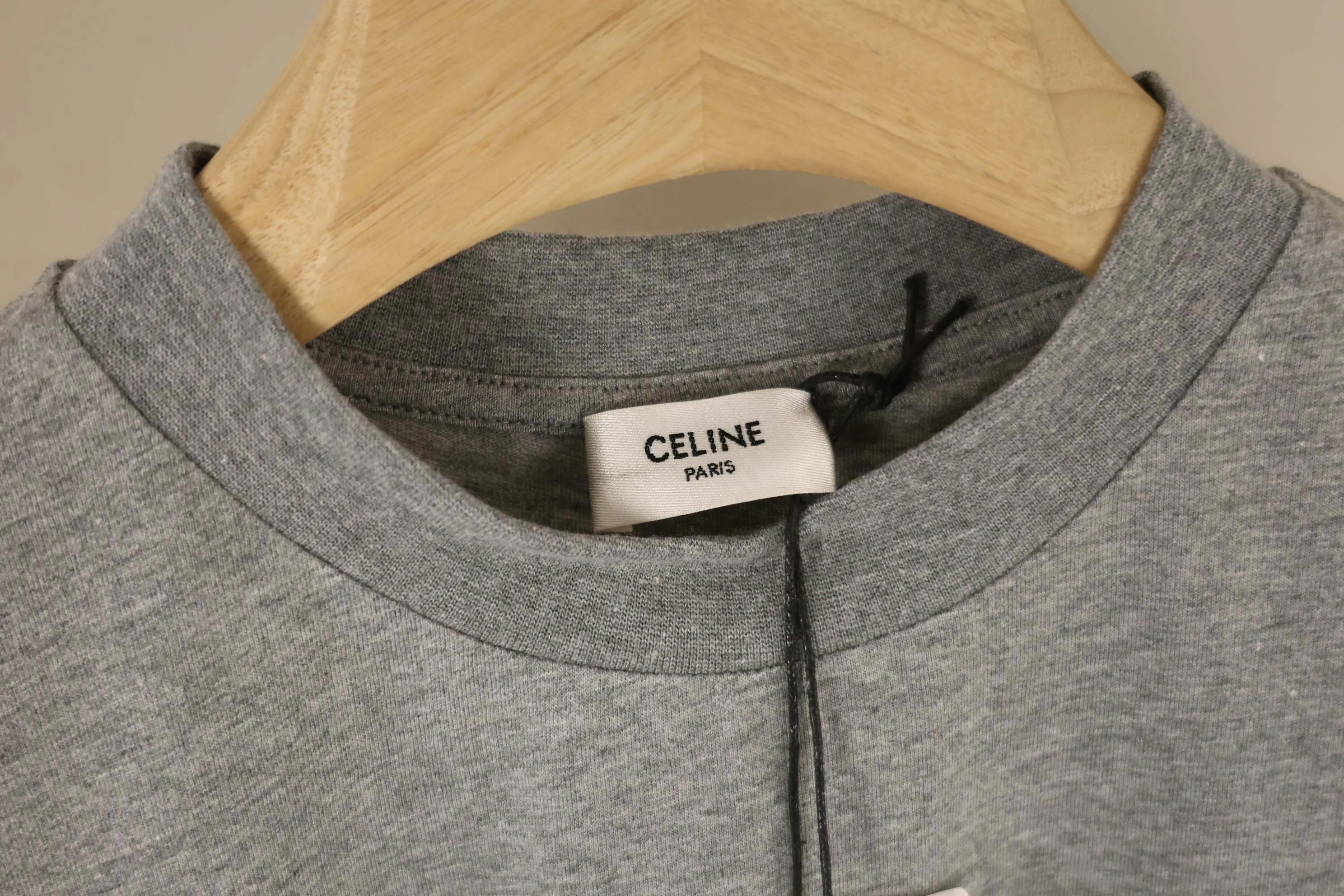 Футболка имеет свободный крой, что делает её идеальной для повседневного ношения. Изготовлена из качественного хлопка с гладкой текстурой, что придаёт изделию роскошный вид и ощущение комфорта. На груди размещен вышитый логотип, ставший классическим символом CELINE, свидетельствуя о высоком уровне мастерства и традициях бренда.