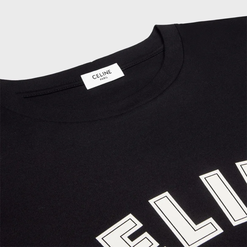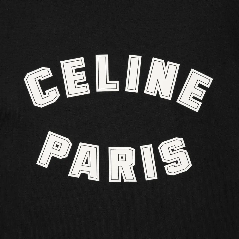 Футболка выполнена в свободном крое, что делает её идеальной для повседневной носки. Минималистичный, но выразительный дизайн акцентирует внимание на надписи "CELINE PARIS", размещенной на груди, которая выполнена в контрастных черно-белых тонах. Это создает элегантный и благородный внешний вид, который подчеркивает индивидуальность владельца.