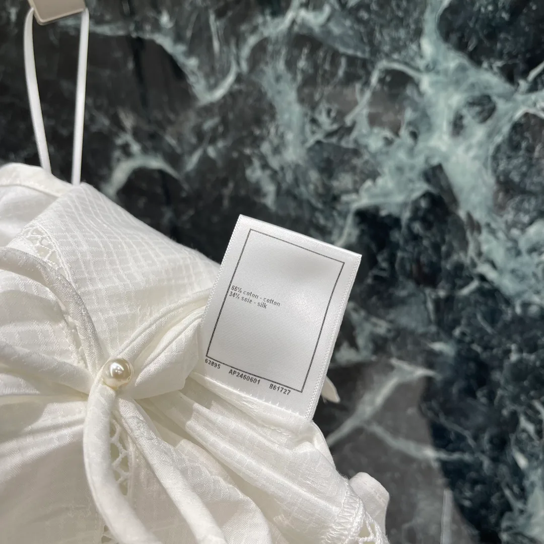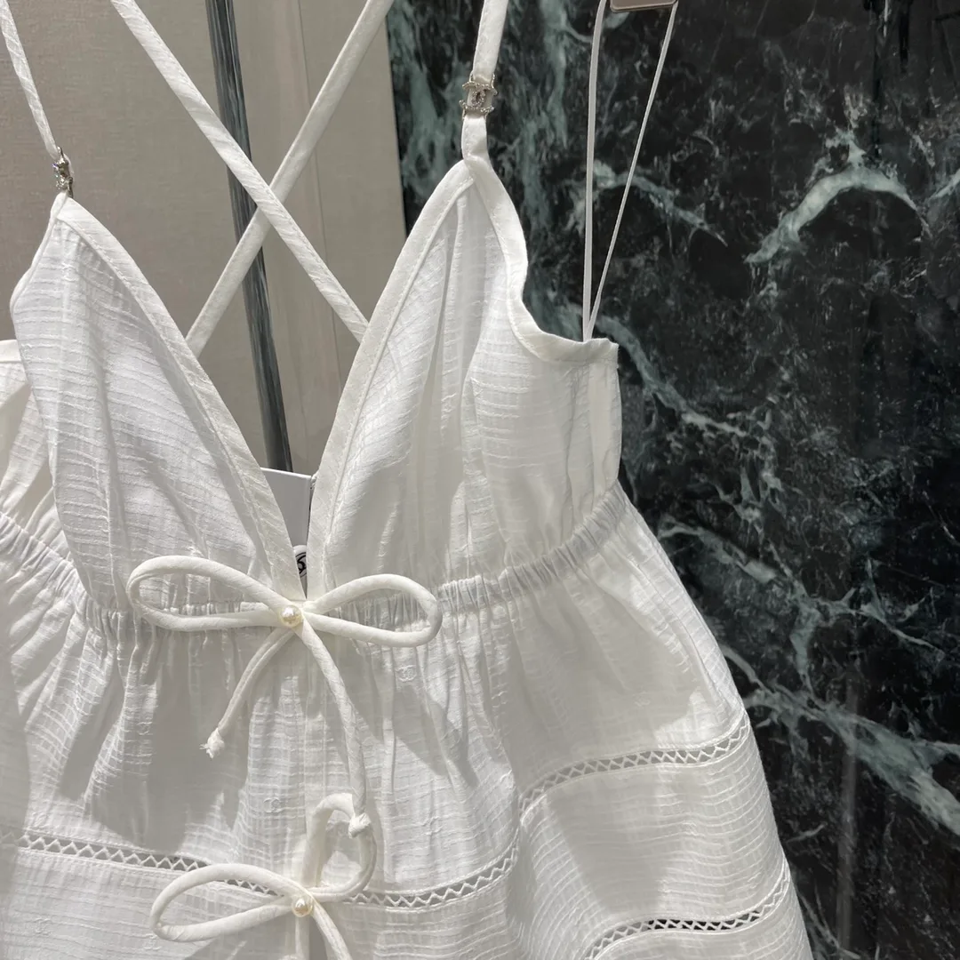 Изготовленный из качественных и приятных к телу материалов, этот топ обеспечивает максимальный комфорт в жаркие дни. Крой модели с перекрестными бретельками создает интересный силуэт, который добавляет изюминку в ваш образ. Топ дополнен изысканным узором в виде тонких клеток и имеет контрастный элемент в виде знака двойной «C», который придаёт ему статусный вид.