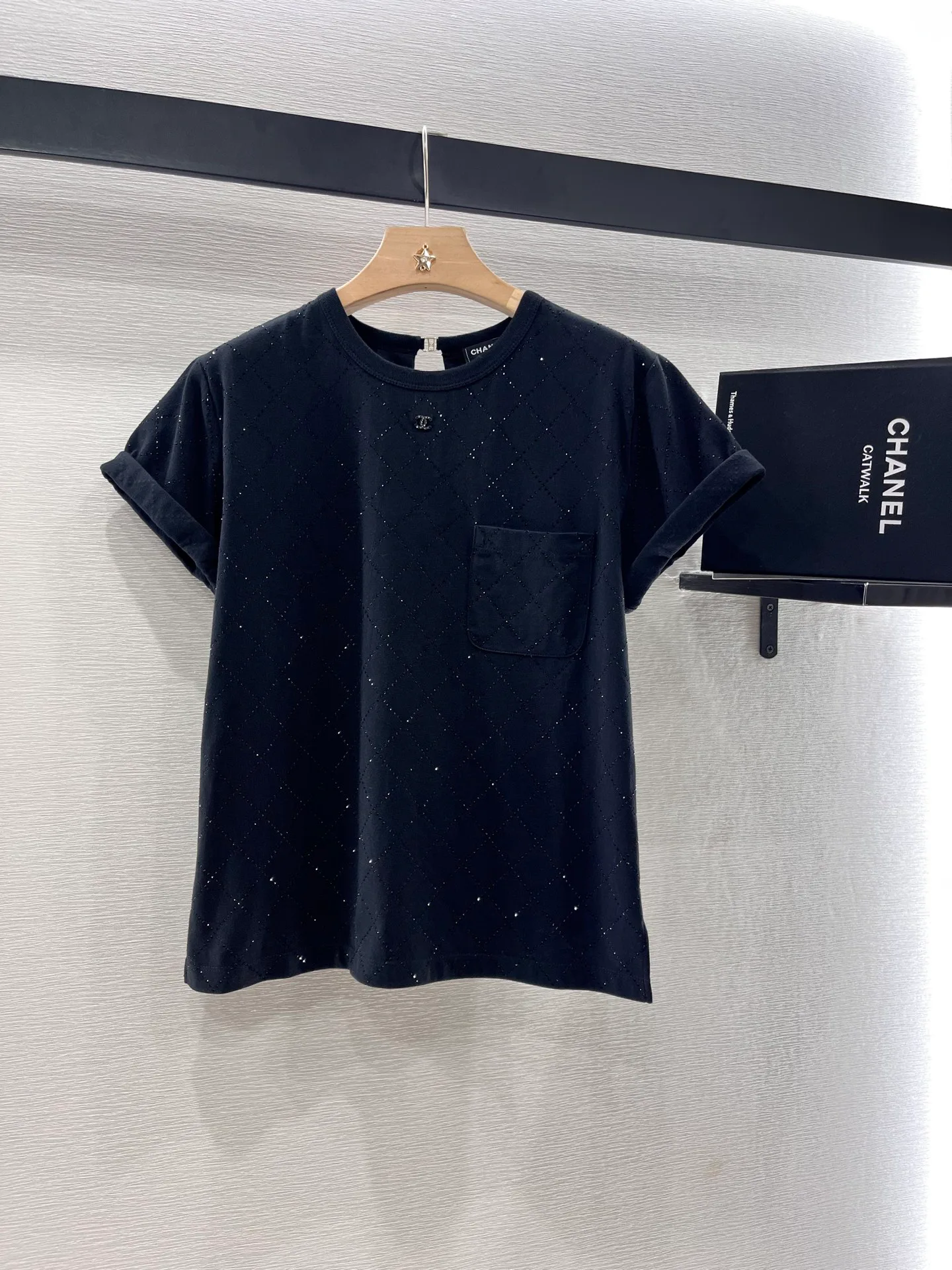 Футболка также украшена фирменным двойным логотипом "C" на груди и стильной серебристой застежкой на открытой спине. Этот элемент добавляет нотку сексуальности и оригинальности, делая изделие идеальным для создания стильного образа как на выход, так и для повседневной носки.
