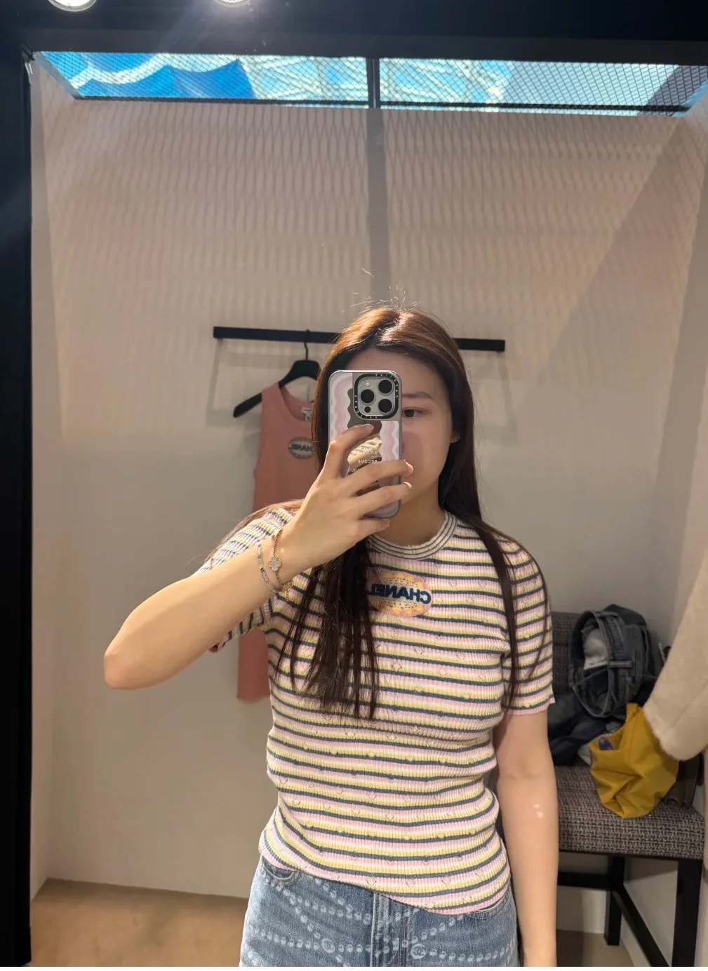 Футболка выпускается в классических цветах: белый с цветными полосами, что делает её универсальной в сочетании с разной одеждой. Ориентирована на женщин и предназначена для повседневной носки. Ткань может быть хлопковой или с добавлением эластана, что обеспечивает комфорт и свободу движений.