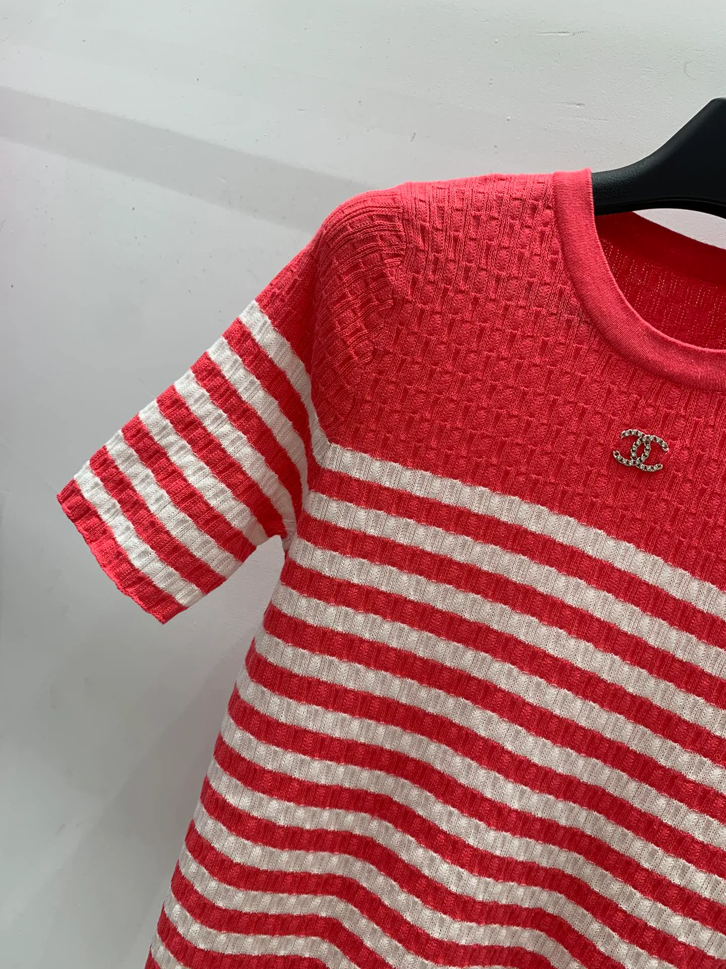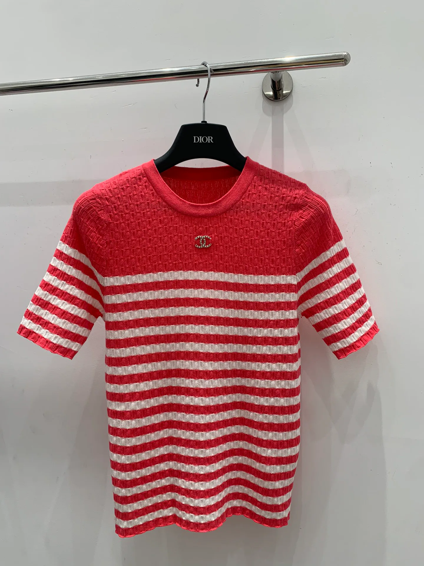 Представляем вашу вниманию стильную короткую кофточку из новой весенней коллекции от бренда CHANEL. Эта модель выполнена из высококачественного трикотажа и имеет круглый вырез горловины, что придает ей классический вид. Особенностью дизайна являются контрастные полосы, создающие эффект колор-блокинга, которые приносят оригинальность и яркость в образ.