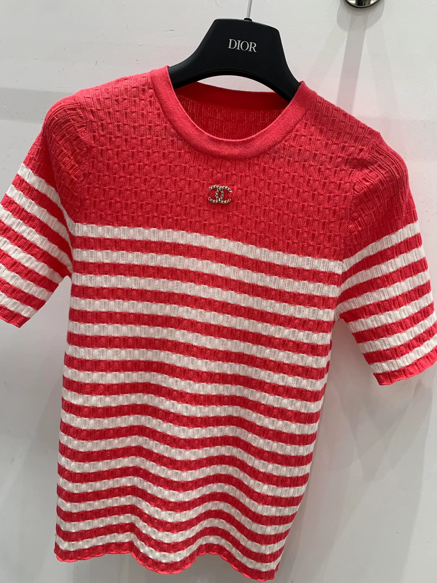 Кофточка украшена знаменитым двойным логотипом "C", что подчеркивает статус и изысканный стиль бренда. Благодаря приталенному крою, изделие выгодно подчеркивает линии фигуры, создавая эффект стройности и женственности.