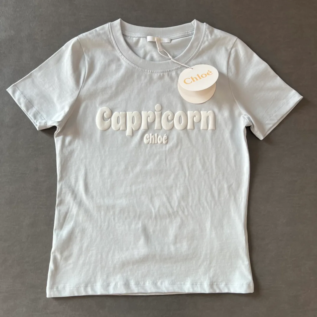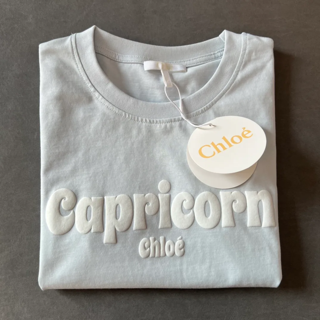 Футболка имеет округлый вырез, который смягчает силуэт и придаёт ему изысканность, а короткие рукава добавляют удобства и позволяют коже дышать. На передней части изделия расположена объемная надпись, которая создает стильный акцент и делает модель яркой и привлекательной.
