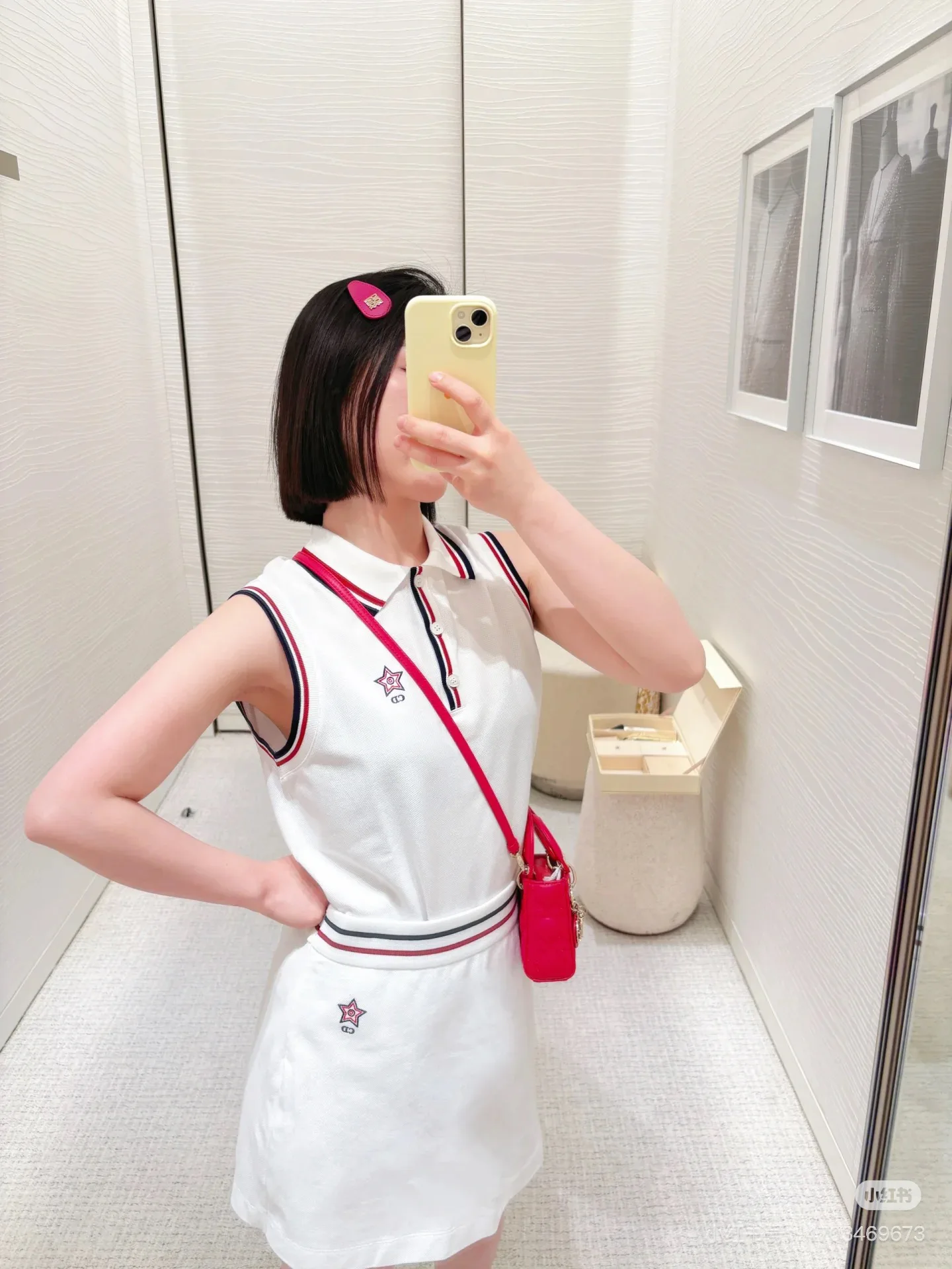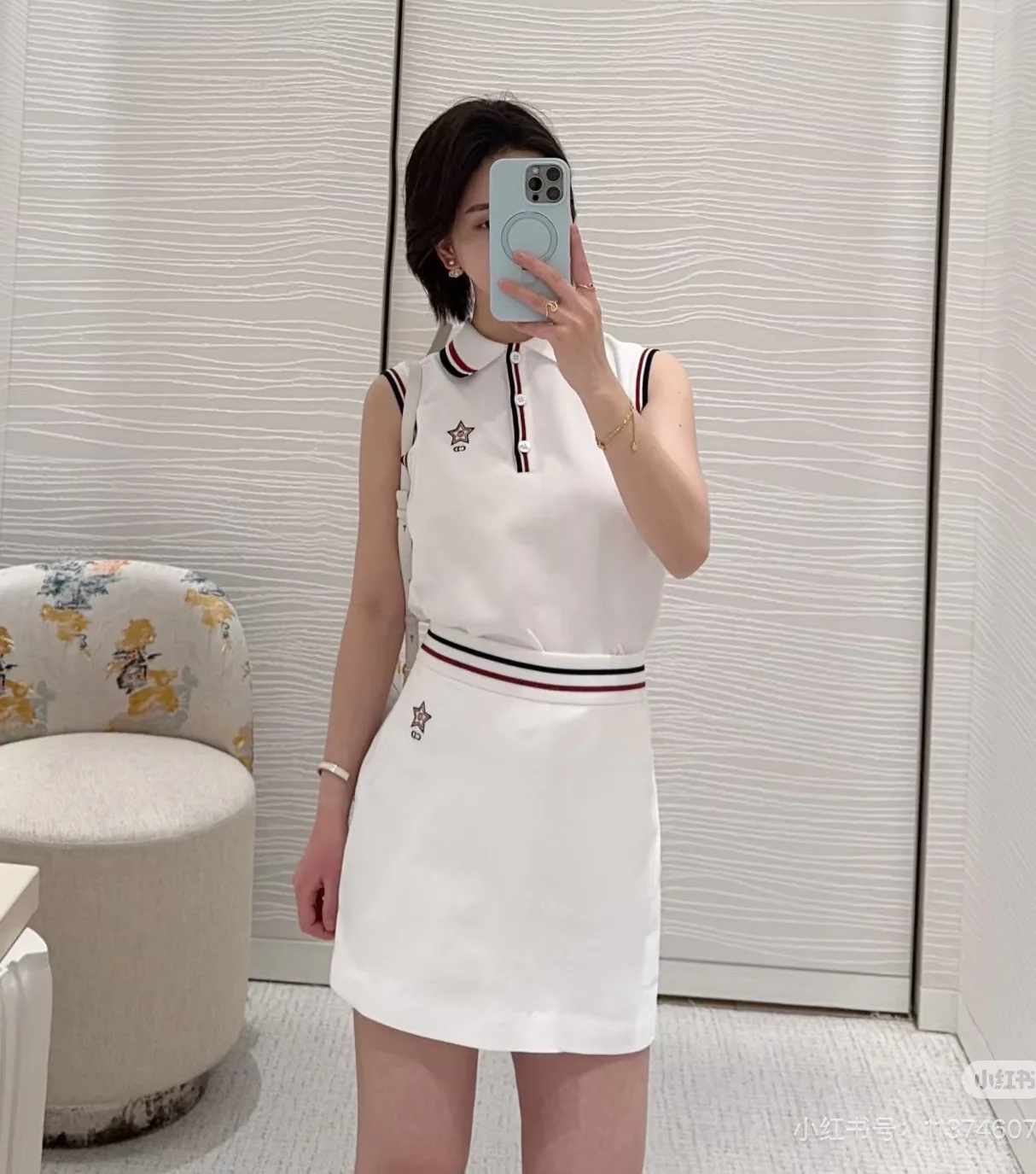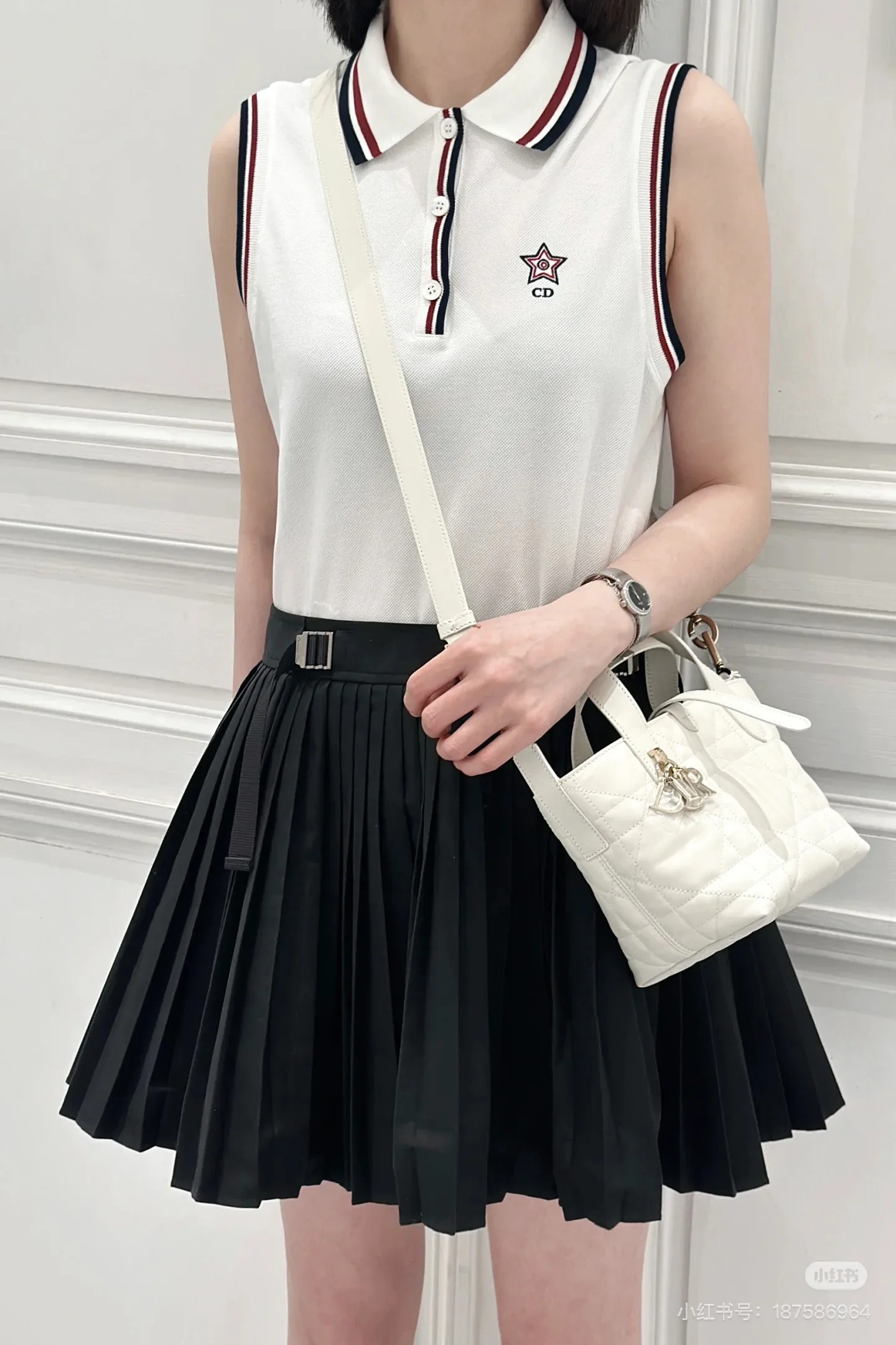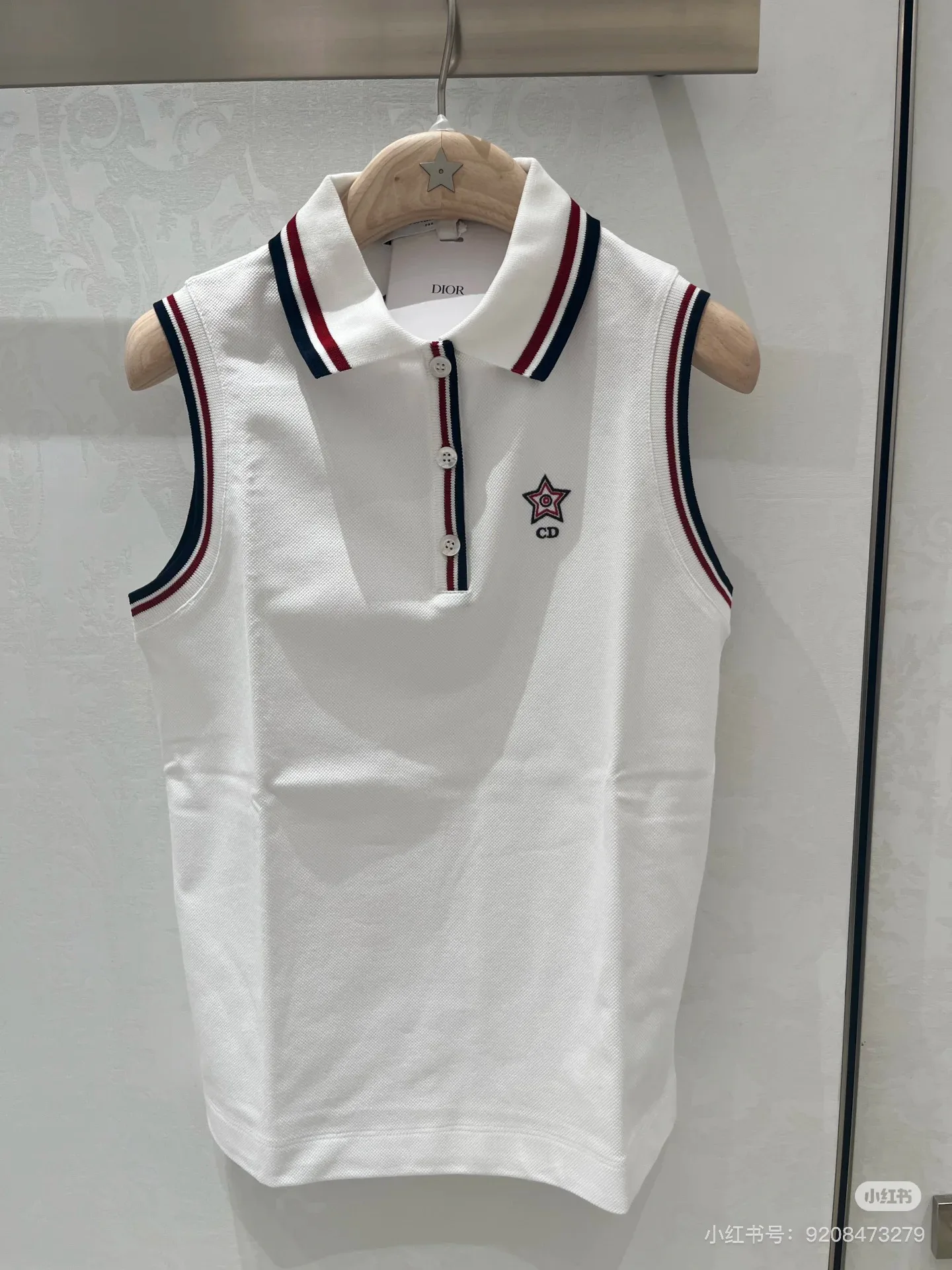 Элегантный воротник поло дополнен контрастной отделкой в темно-синем и бордовом цветах, что придаёт изделию изысканный вид. Спереди расположены три функциональные пуговицы, которые дополняют образ и позволяют регулировать комфорт при носке. Вышитая звезда с логотипом CD служит акцентом и подчёркивает дизайнерскую ориентацию бренда.