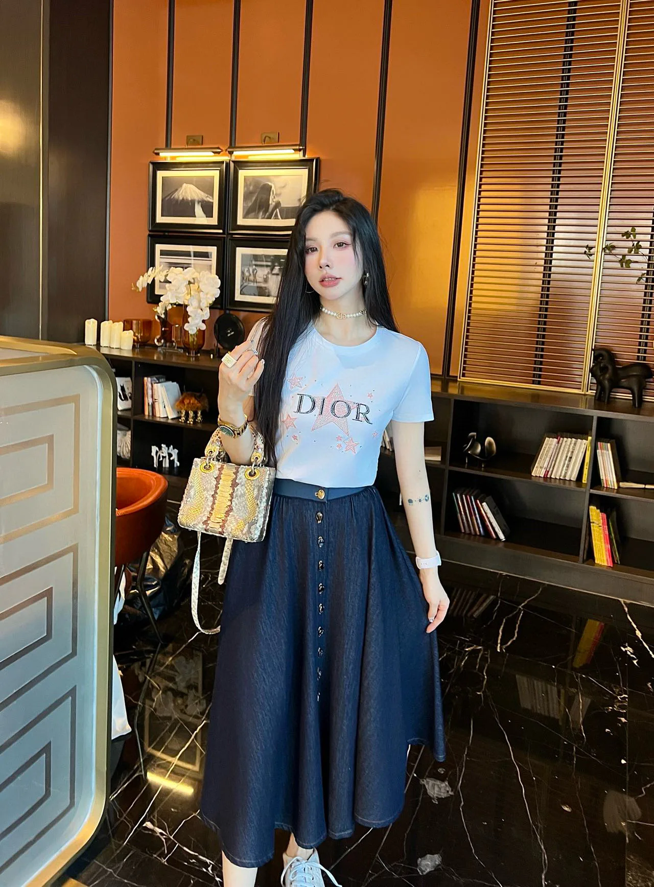 Данная модель предназначена для женщин, и её универсальный стиль позволяет легко комбинировать футболку с различными элементами гардероба: шортами, джинсами или юбками. Простота и элегантность дизайна делают эту футболку отличным выбором для повседневной носки, а также для неформальных встреч с друзьями или прогулок по городу. Создайте стильный образ с этим качественным и модным предметом одежды от CHRISTIAN DIOR!