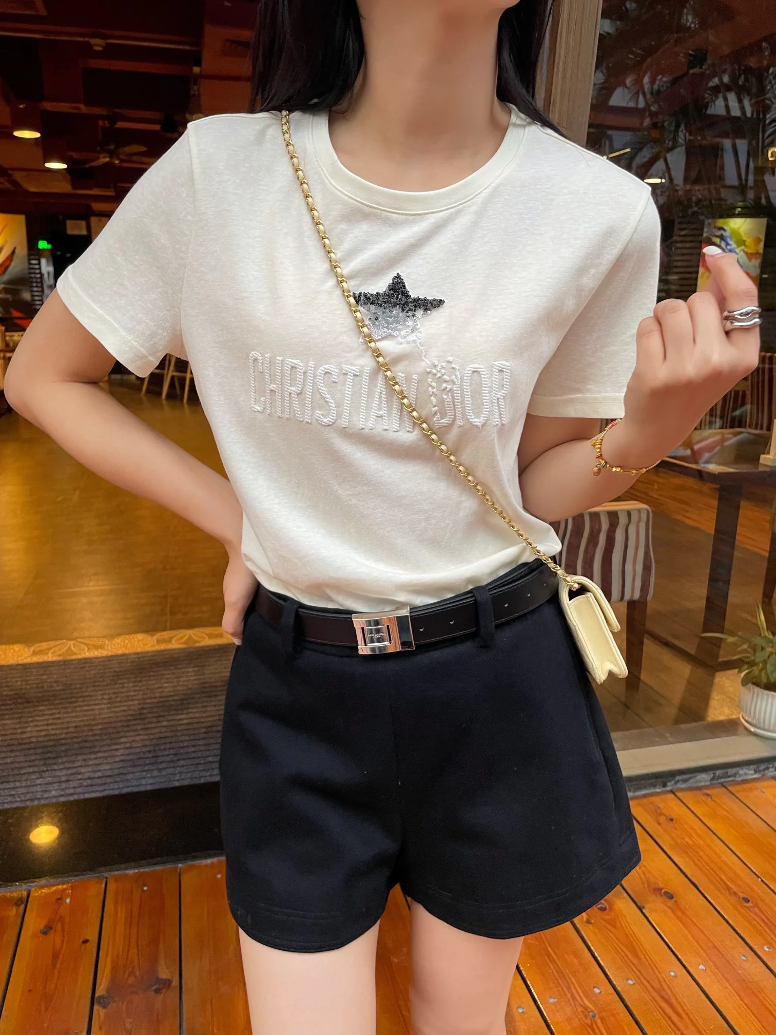 Материал, из которого изготовлена футболка, мягкий и приятный на ощупь, что гарантирует комфорт при носке в течение всего дня. Этот модный предмет одежды предназначен для женщин и прекрасно подойдет для создания повседневного образа, сочетаясь с различными стилями и аксессуарами. Футболка CHRISTIAN DIOR станет отличным дополнением к вашему гардеробу, позволяя вам выглядеть стильно и чувствовать себя уверенно в любой ситуации.