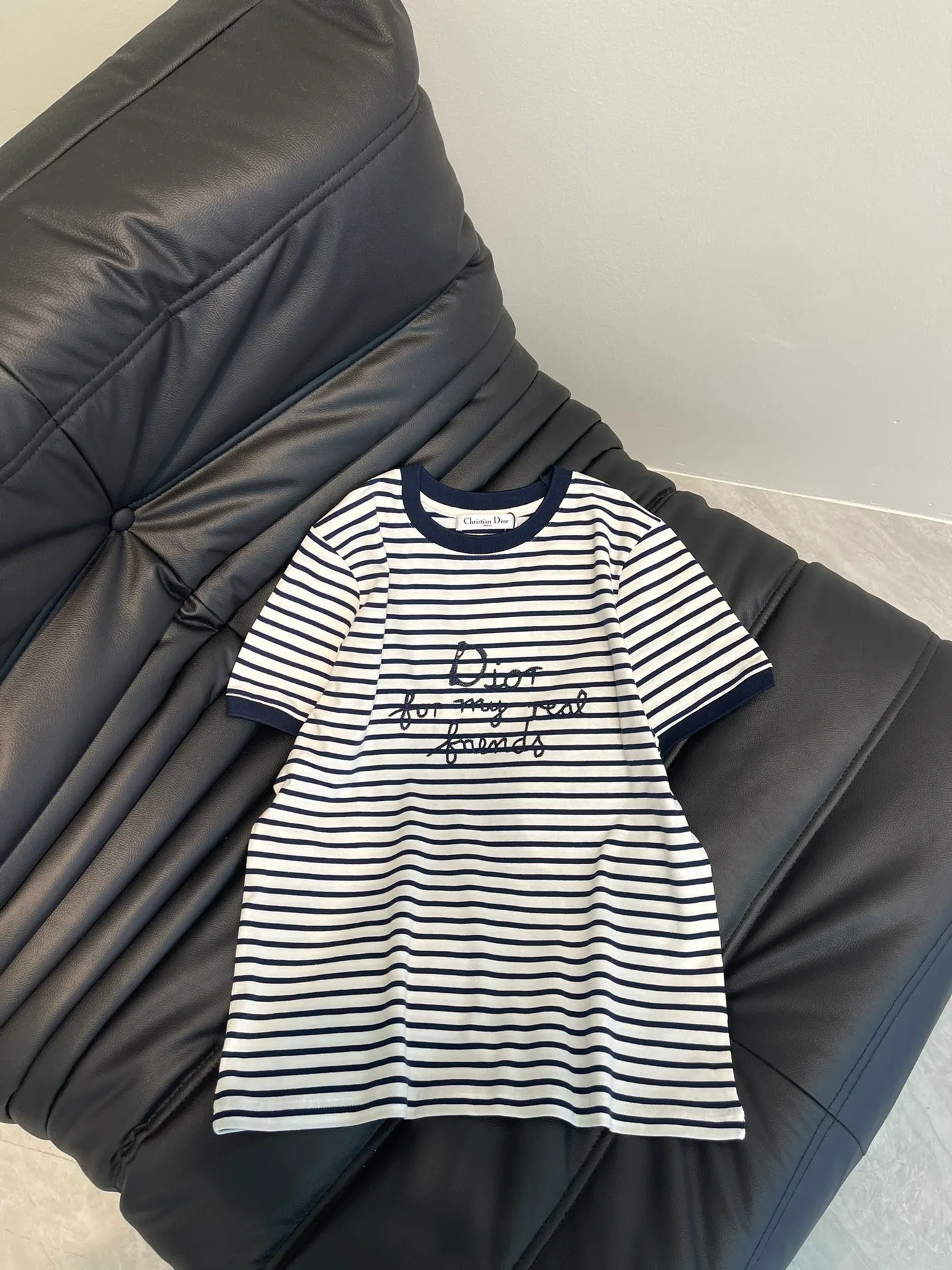 Футболка украшена классическим вышитым логотипом, что подчеркивает её стильный и современный дизайн. Уникальная полосатая расцветка добавляет элемент свежести и игривости, делая образ более молодёжным и динамичным.