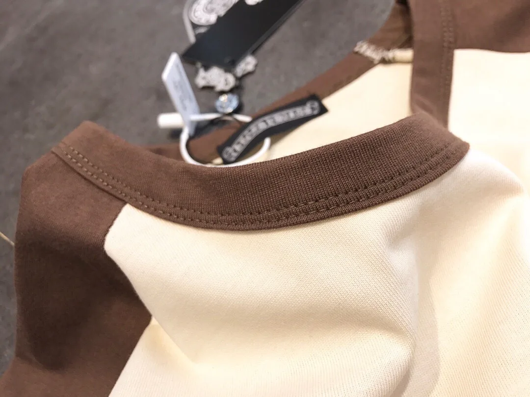 Представляем вам стильную длинную футболку с длинным рукавом от бренда CHROME HEARTS. Модель выполнена в гармоничном сочетании бежевого и коричневого цветов, что придает ей универсальность для различных образов.