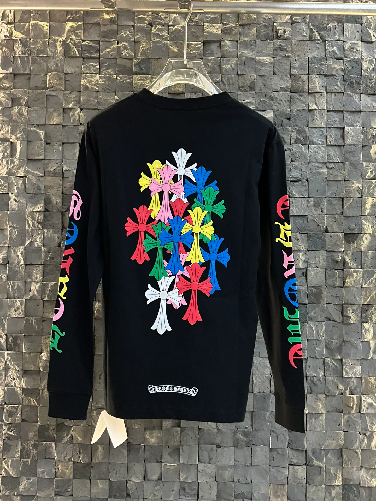 Футболка представлена в размерах S, M, L, XL и XXL. Она обладает минималистичной стилистикой с акцентом на цветной логотип спереди.