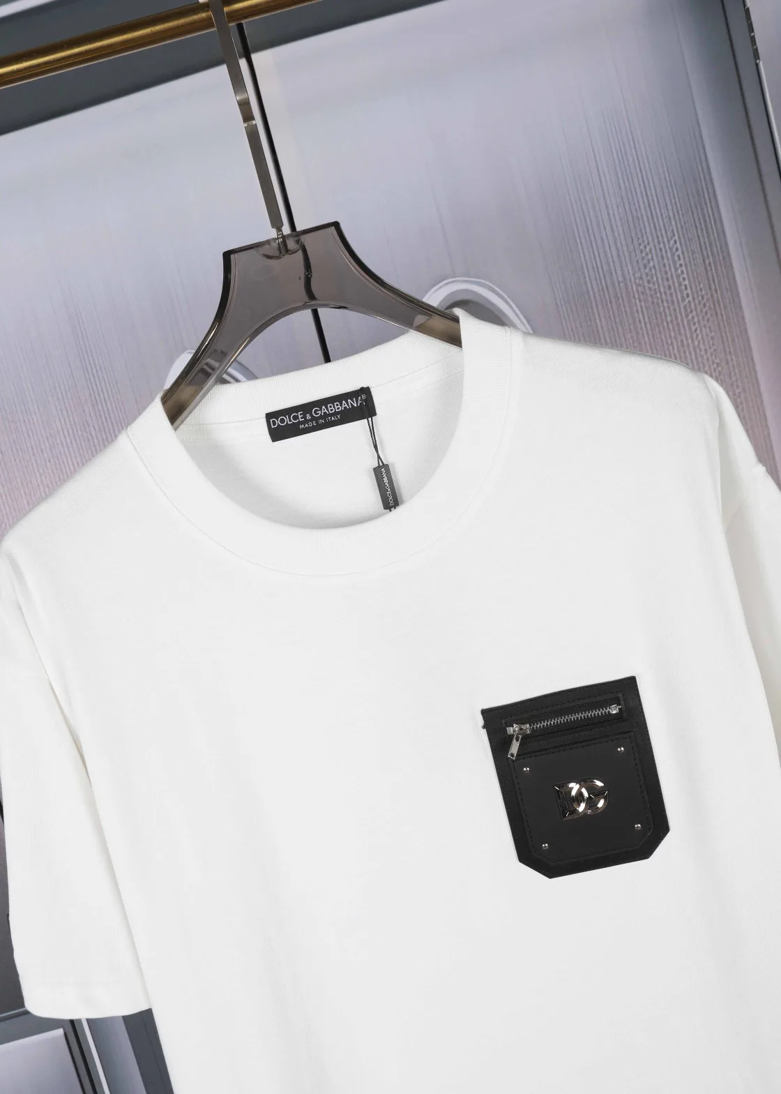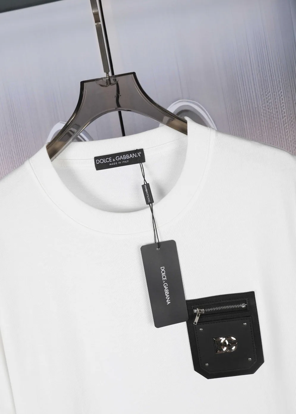 Детали модели украшены кожаным декором на груди и рукавах, что придаёт изделию изысканный и современный вид. Футболка предлагается в четырех цветах — черном и белом, что позволяет сочетать её с различными стилями.