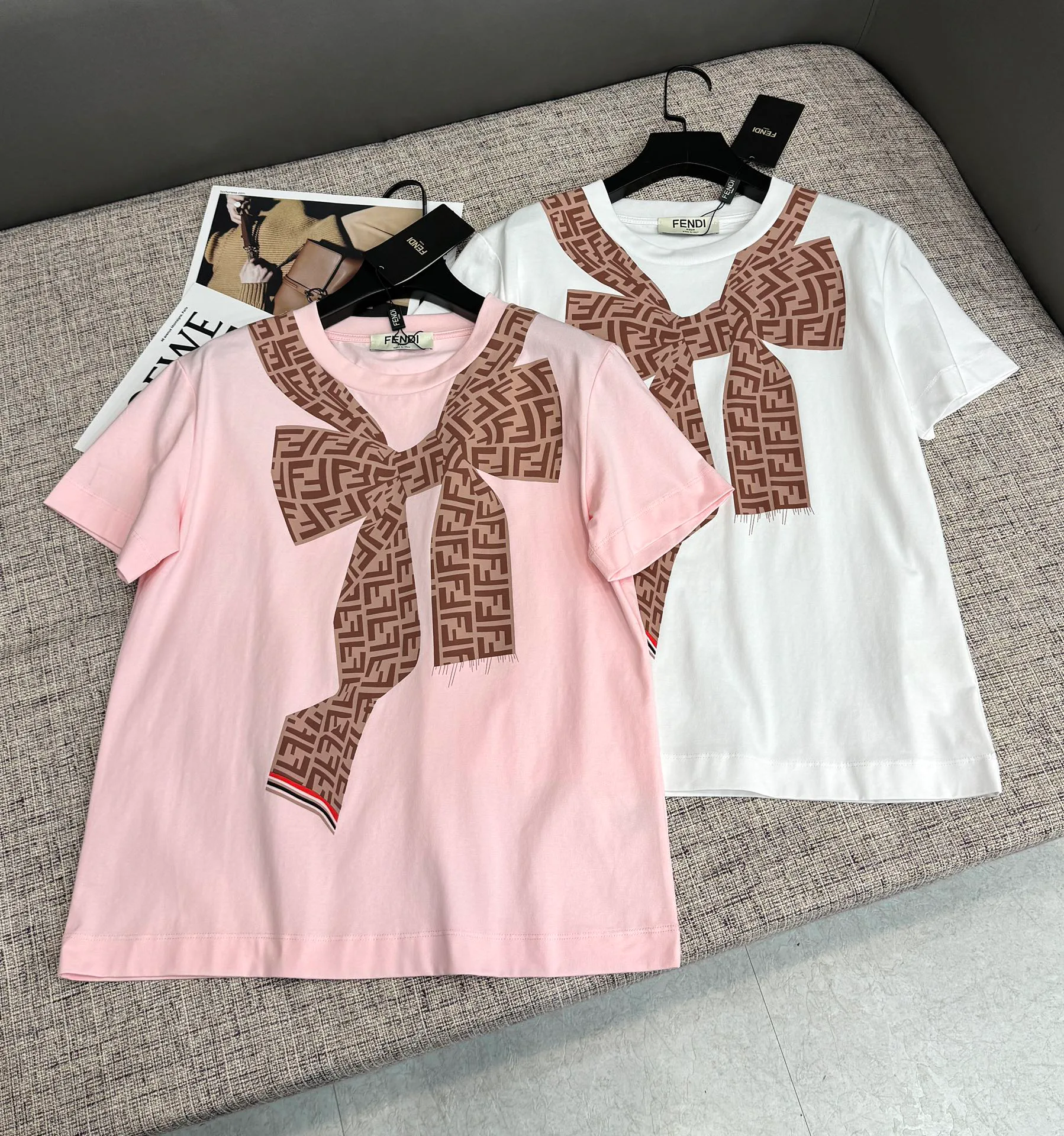 Футболка доступна в двух цветах: белом и розовом. Размеры: S, M и L.