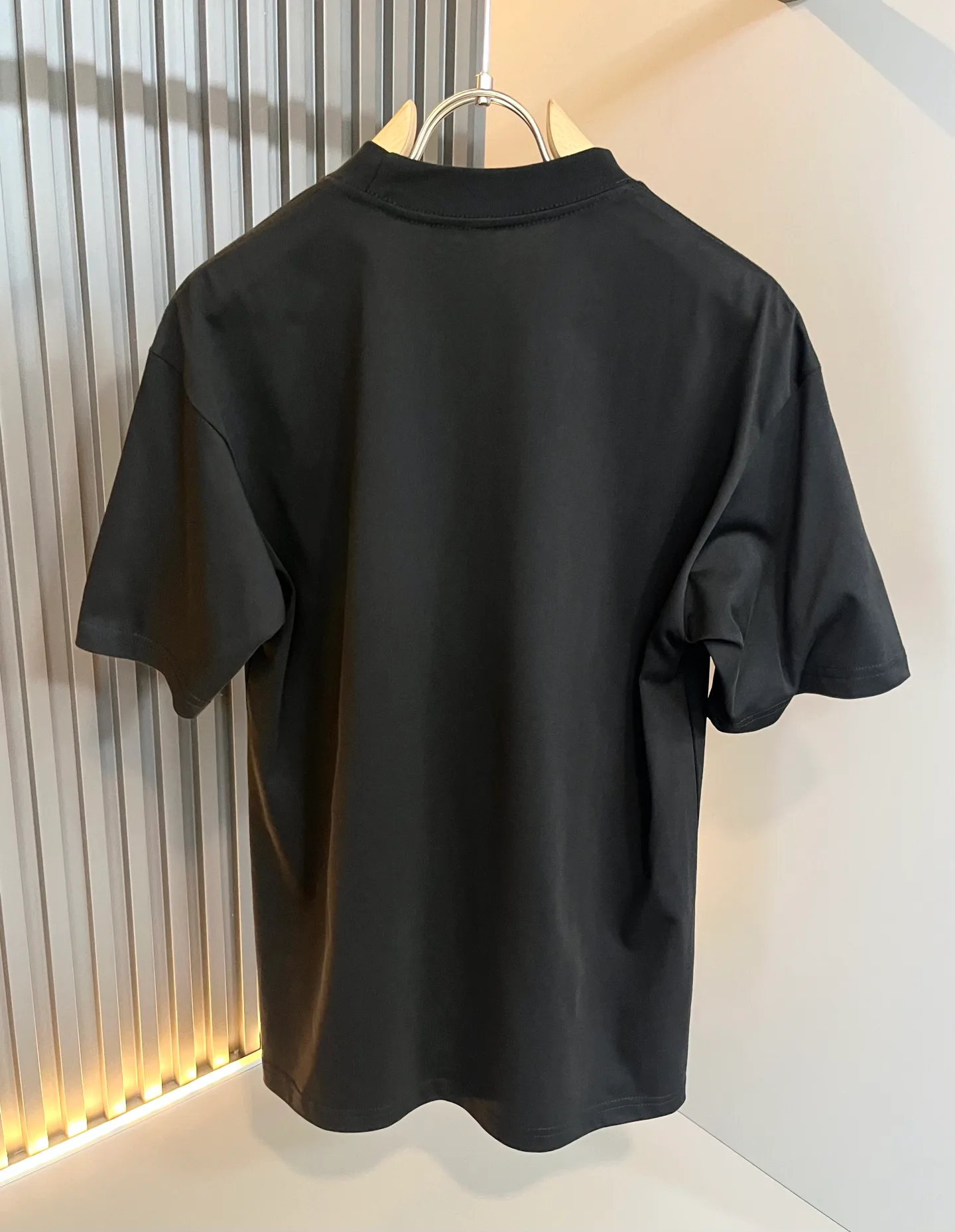 Дизайн футболки представлен в лаконичной черно-белой цветовой гамме с размещенной на груди буквенной эмблемой логотипа, выполненной с акцентной отделкой. Модель доступна в размерах от M до 4XL, что позволяет выбрать подходящий вариант для разных типов фигуры. Эксклюзивное производство и аккуратная фурнитура подчеркивают премиальное качество и долговечность изделия.
