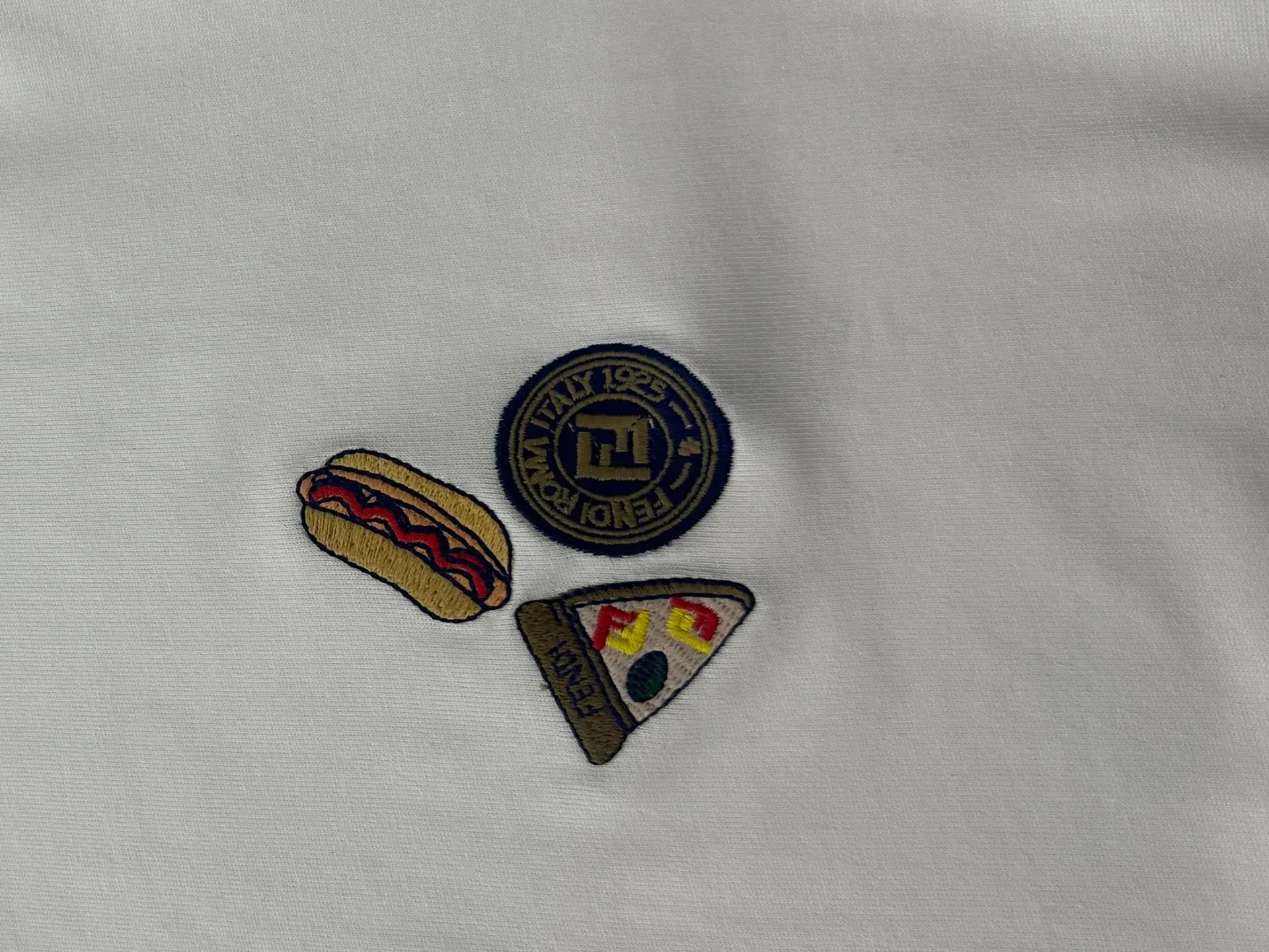 - Декорированная цветным вышитым контуром фразы "Fendilicious" на груди.