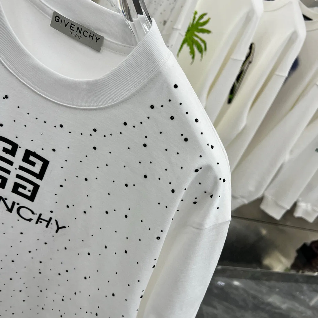 Футболка изготовлена из материала весом 280 грамм с двойной тканевой структурой, что обеспечивает комфорт и долговечность. Применена технология капельной печати и термопереноса страз, которые придают изделию элегантный вид.
