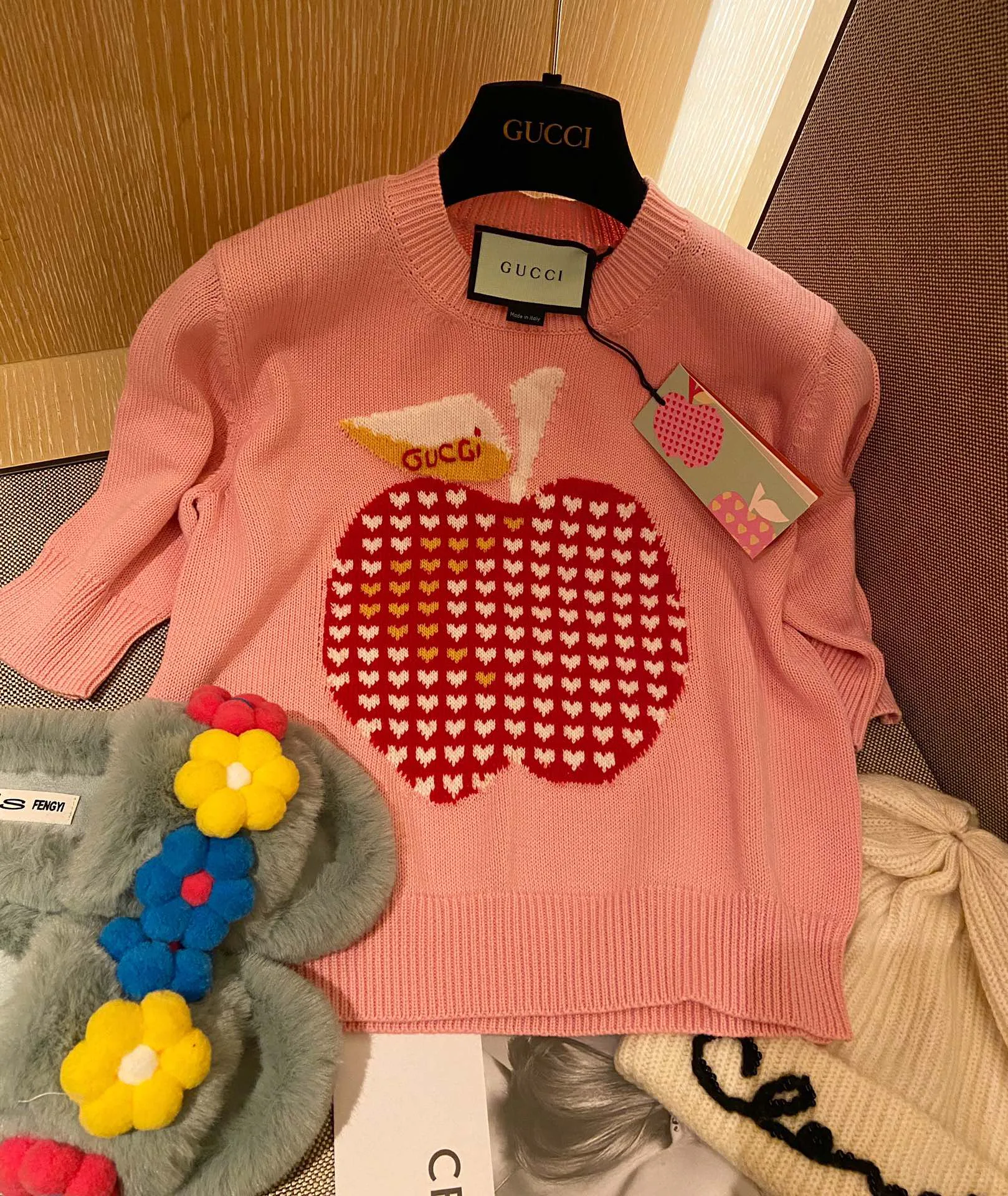 Футболка украшена оригинальным изображением яблока, выполненным с использованием немецких компьютерных технологий и частично ручной работы, что придаёт ей эксклюзивный и высококлассный вид. Яркая цветовая палитра и нежный, но заметный дизайн яблока в форме сердца добавляют очарования и придают эффект моложавости.