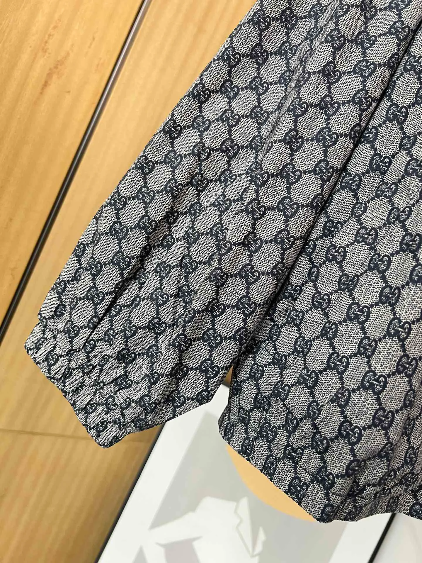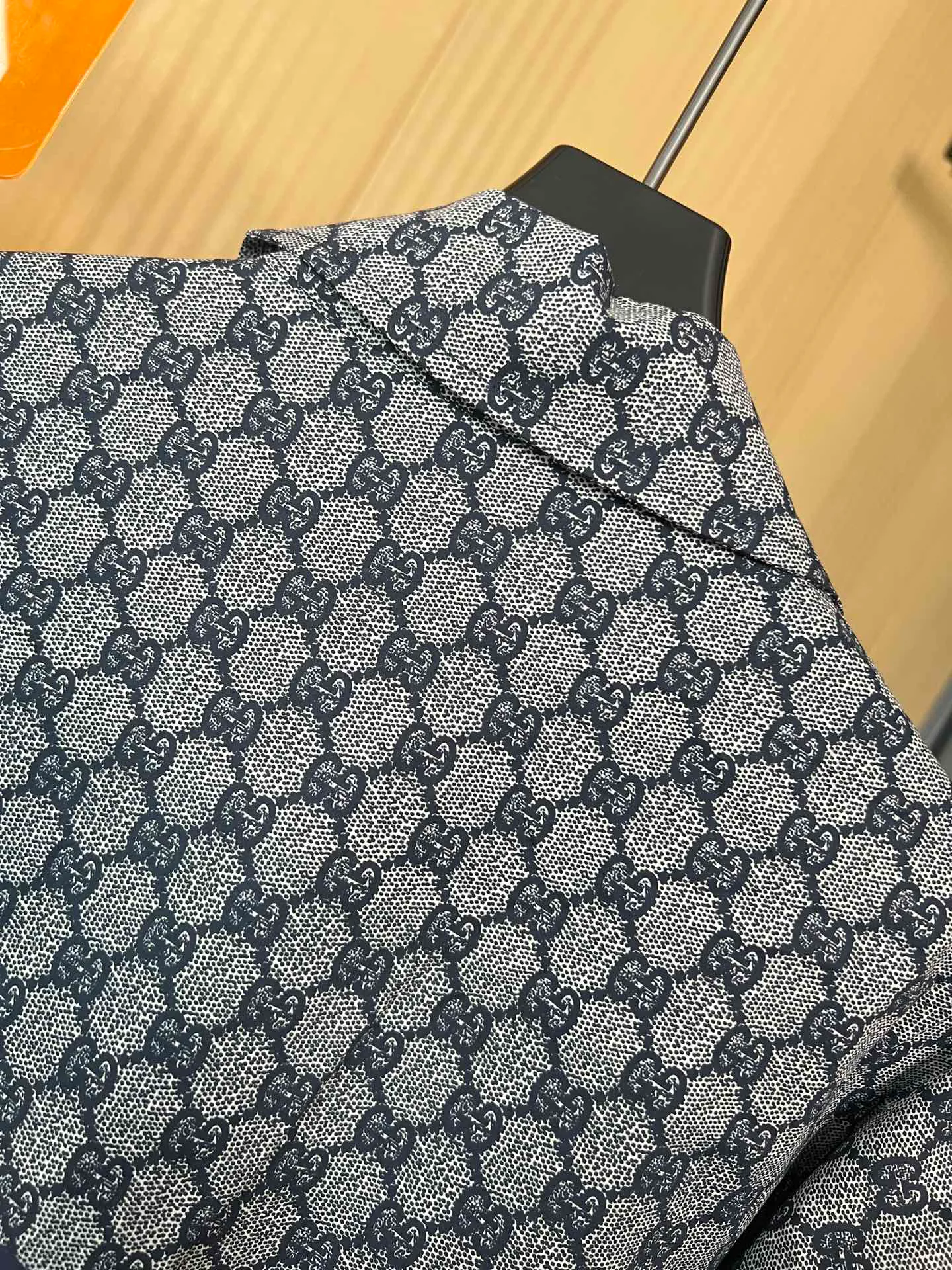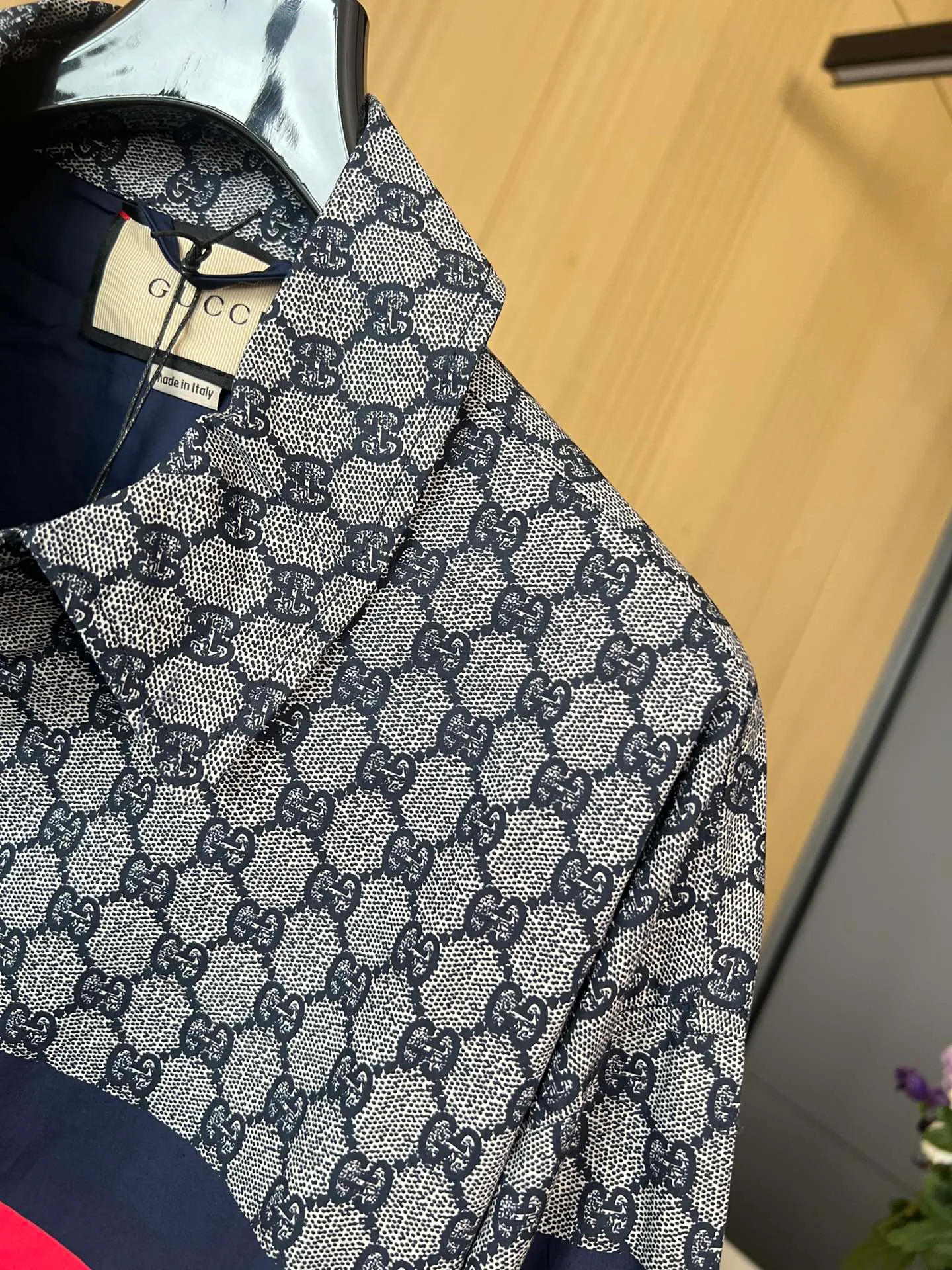 На спине рубашки расположено логотип GUCCI, что подчеркивает принадлежность к этому знаменитому бренду. Застежка на кнопки с гравировкой добавляет изысканности и внимательности к деталям. Прямой крой делает эту рубашку универсальной, она подходит как мужчинам, так и женщинам, и станет отличным дополнением к любому гардеробу.