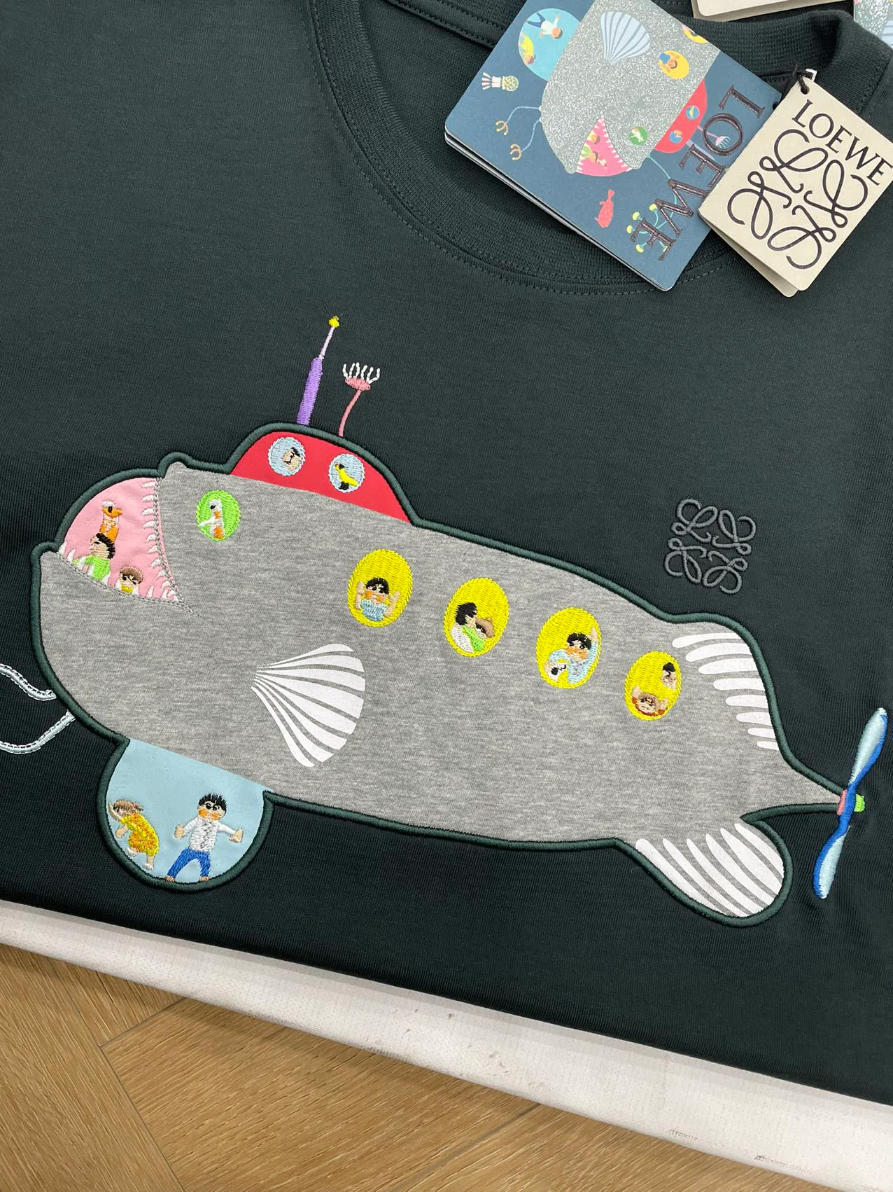 Футболка украшена изысканной вышивкой в виде подводной лодки, придающей ей уникальный и запоминающийся вид. Вышивка на груди тщательно проработана, создавая эффект живого изображения и вызывая желание отправиться в подводное приключение.
