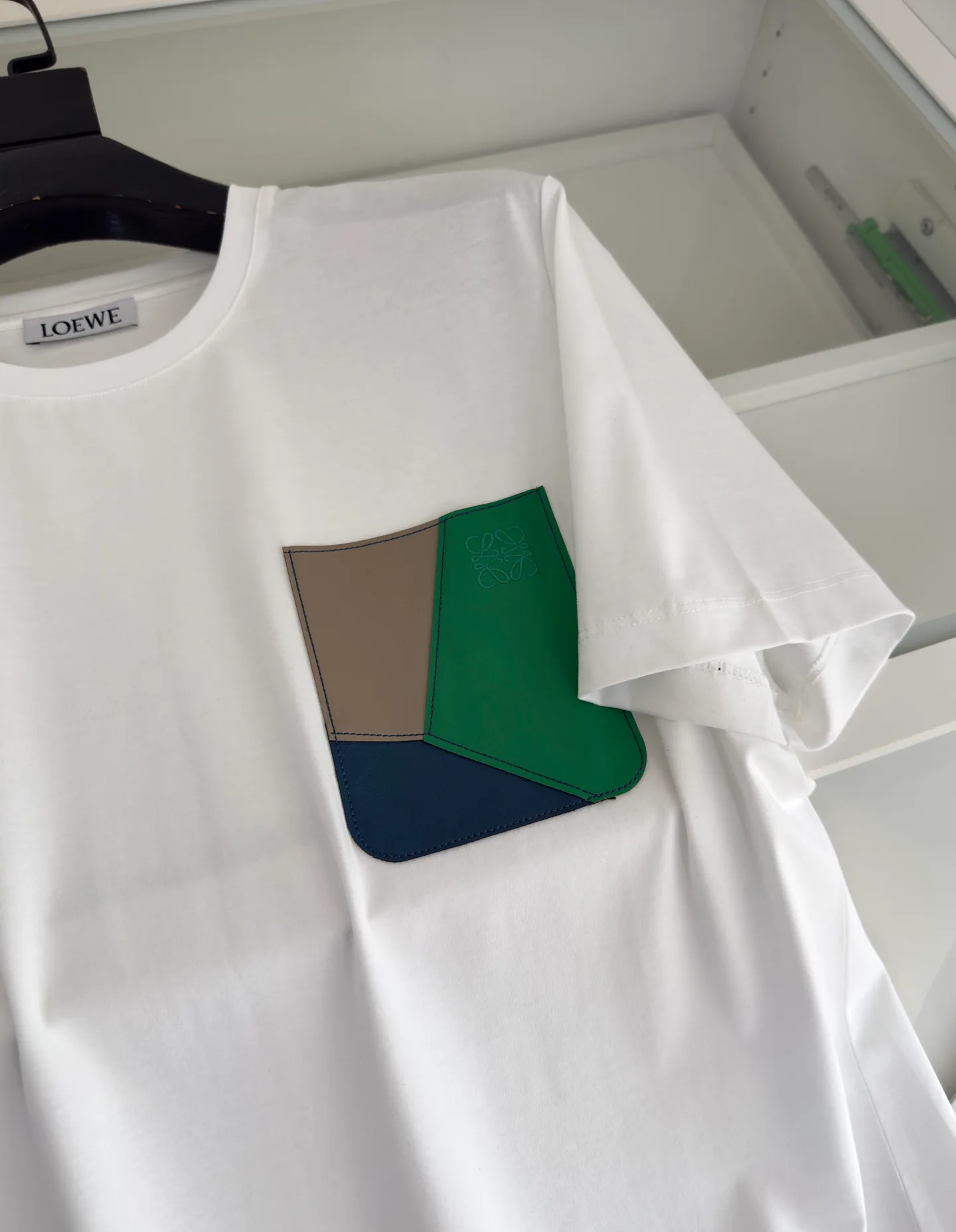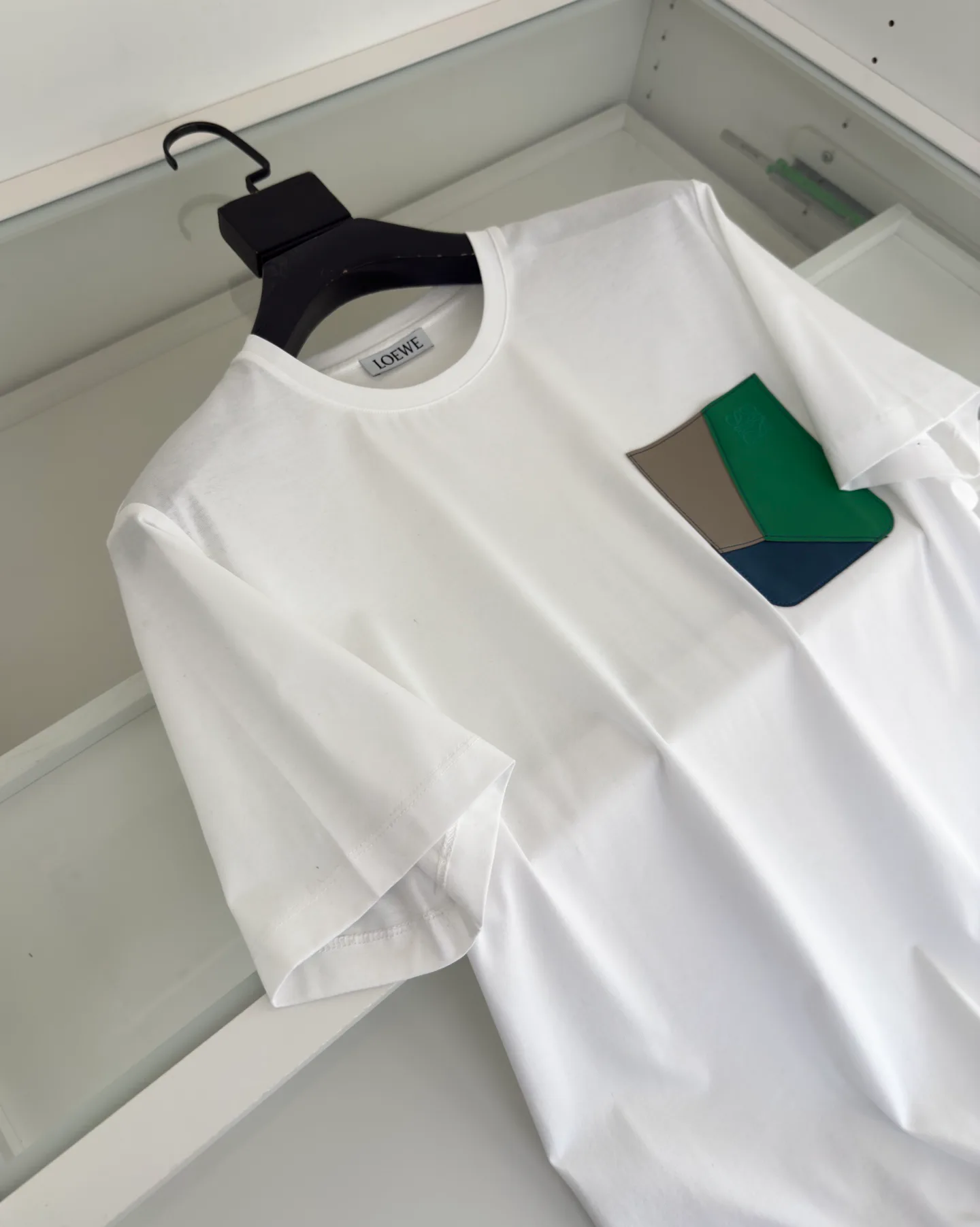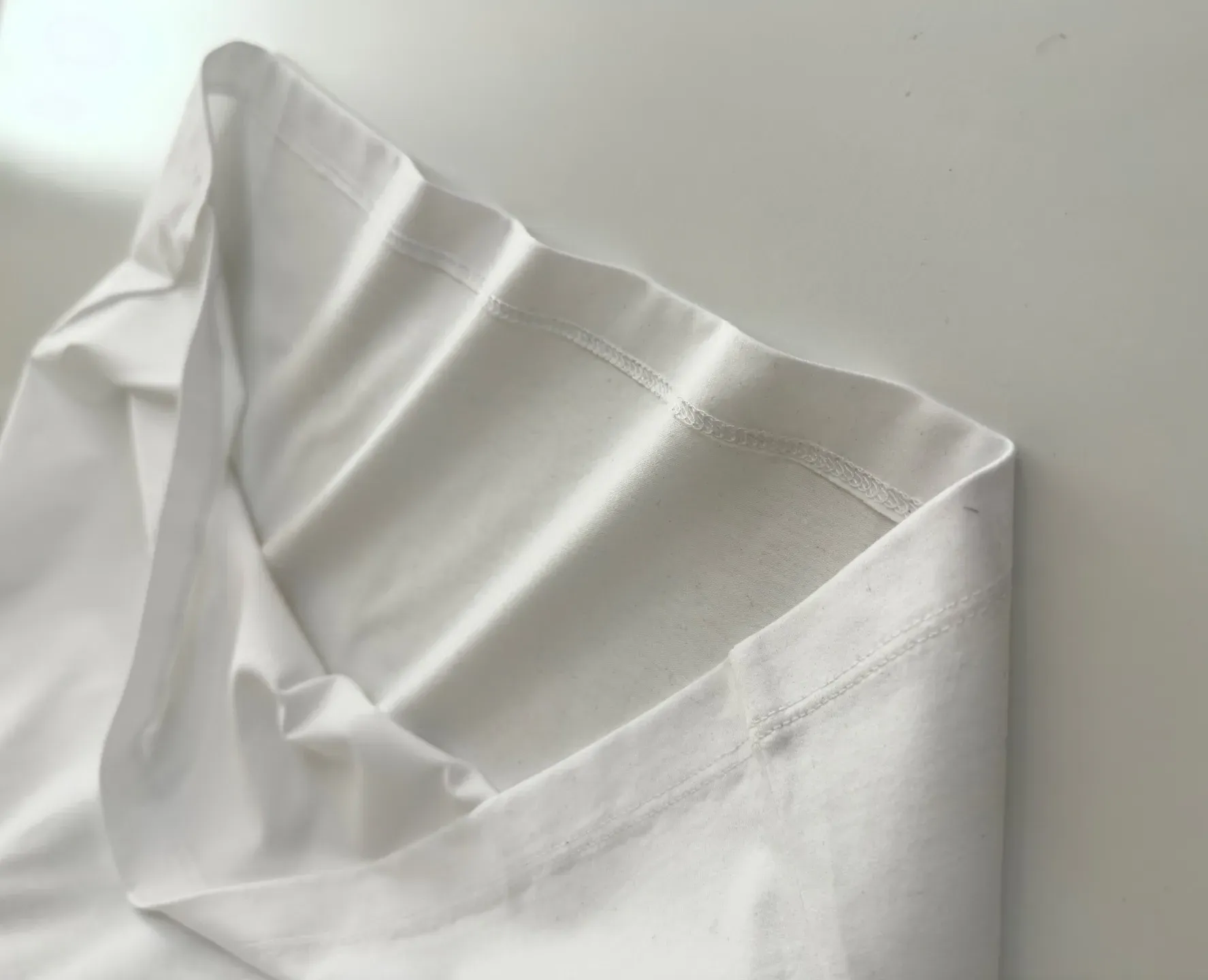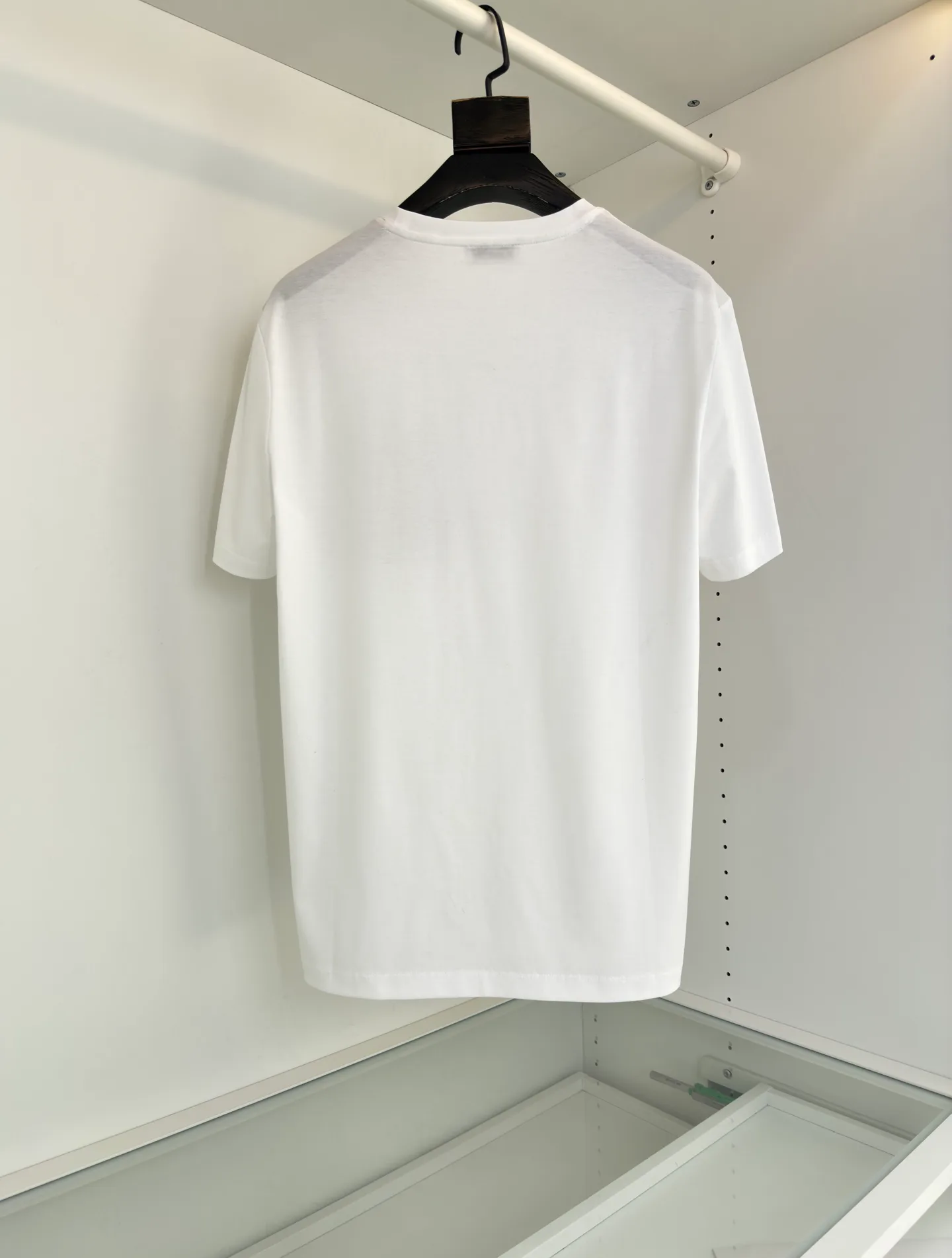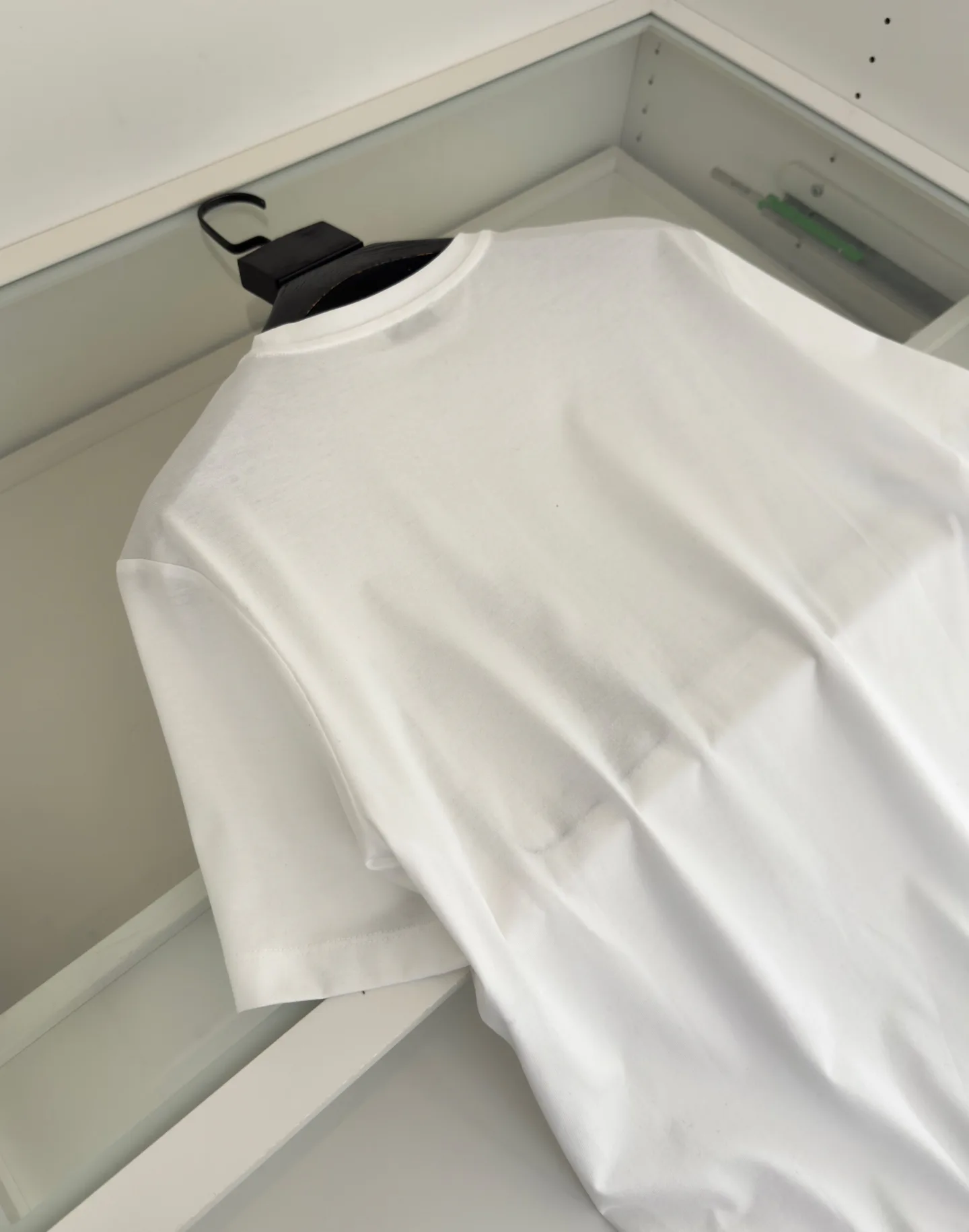 Футболка имеет аккуратный крой и легкое прилегание, а ее горловина слегка накладывается на шею, что добавляет нотку элегантности. Удобный, дышащий материал из шелковистого хлопка придает изделию легкий блеск и обеспечивает приятное ощущение на коже. Благодаря хорошей жесткости футболка сохраняет форму.