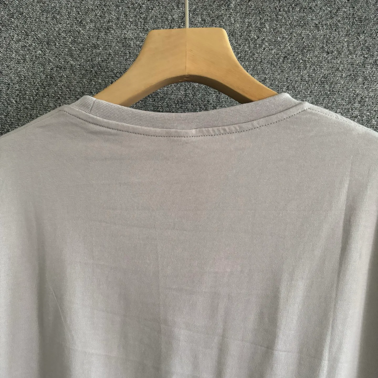 Футболка имеет рифленый воротник, который добавляет интересный акцент к дизайну. Свободный, слегка оверсайз крой подходит большинству размеров и форм, что делает эту модель универсальной для любого гардероба. Она доступна в размерах S, M, L и XL и подходит как для мужчин, так и для женщин.