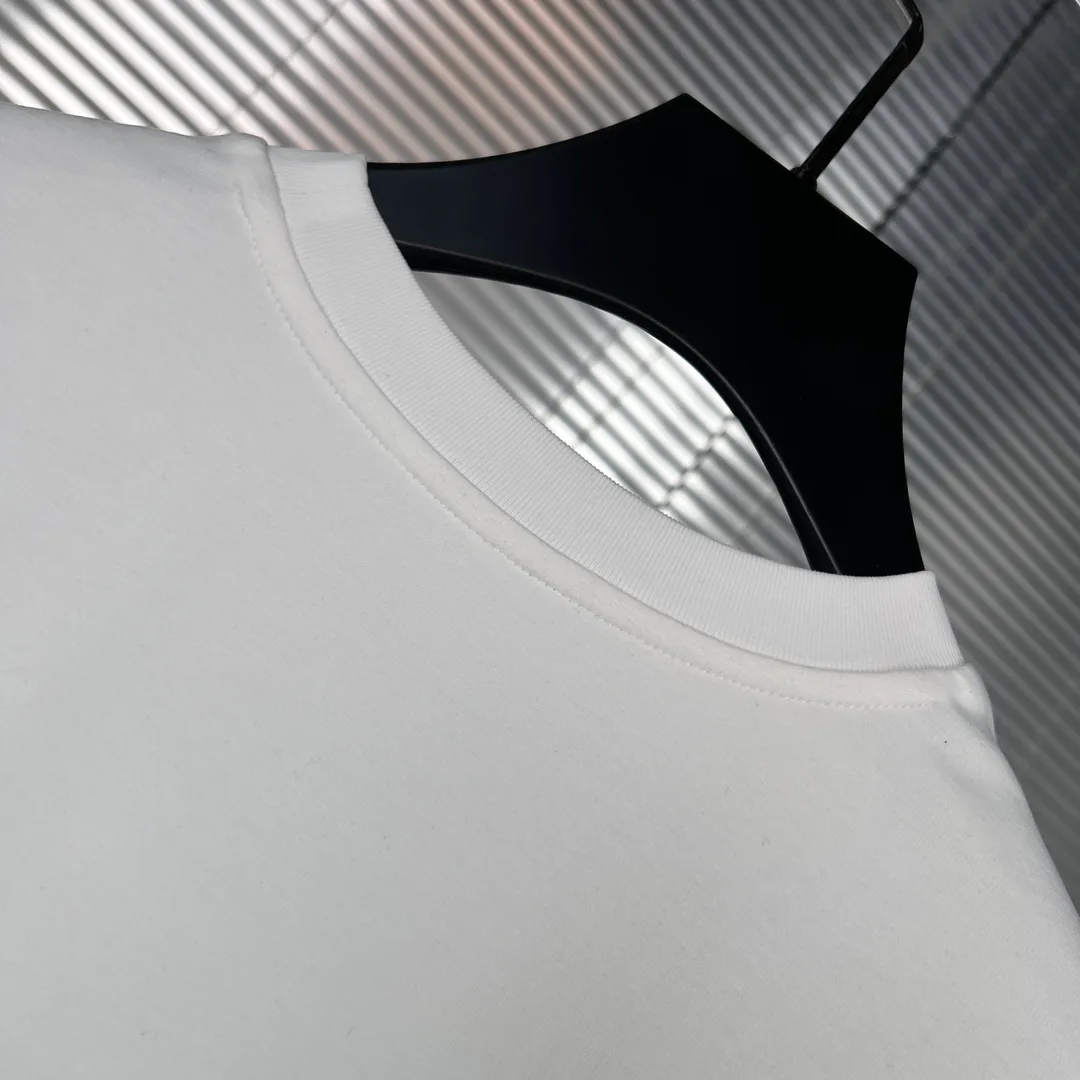 Футболка выполнена из высококачественного хлопка весом 230 граммов. Материал приятен на ощупь: мягкий, объемный и сохраняет форму. На груди — элегантная вышивка логотипа с применением водорастворимой технологии. Этот уникальный подход придает изделию объем и особую текстуру, подчеркивая высокое качество и мастерство исполнения.