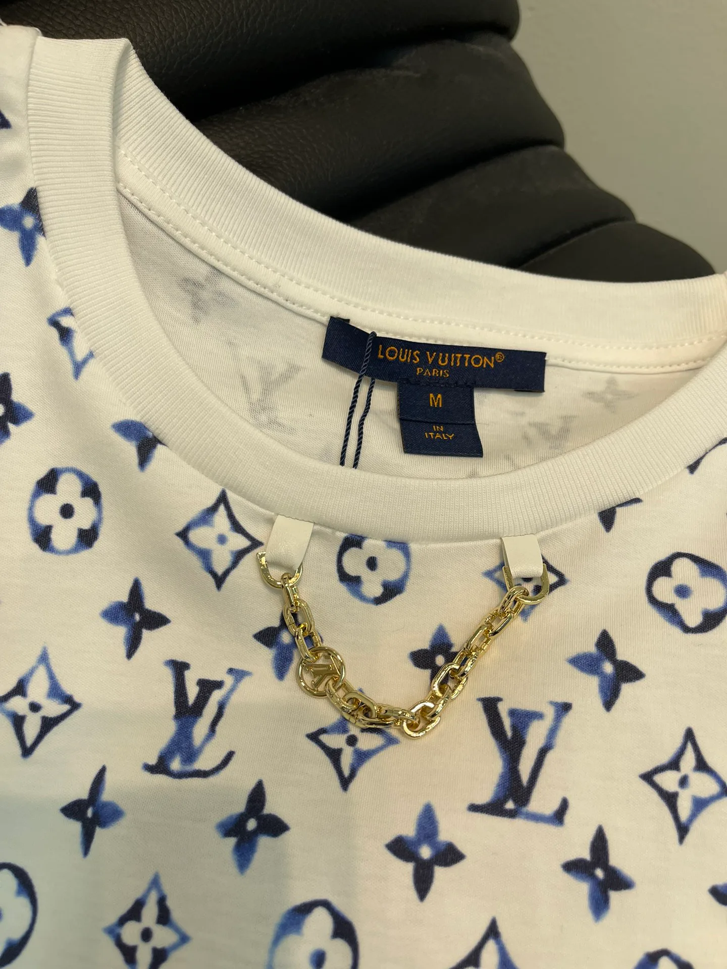 Уникальной деталью является воротник с металлической цепочкой и буквами, придающей изделию стильный вид. Элементы с буквами и символами четырехлистного клевера подчеркивают индивидуальность модели. Яркие цветовые сочетания делают ее привлекательной для повседневной носки. Размерный ряд представлен S, M, L.